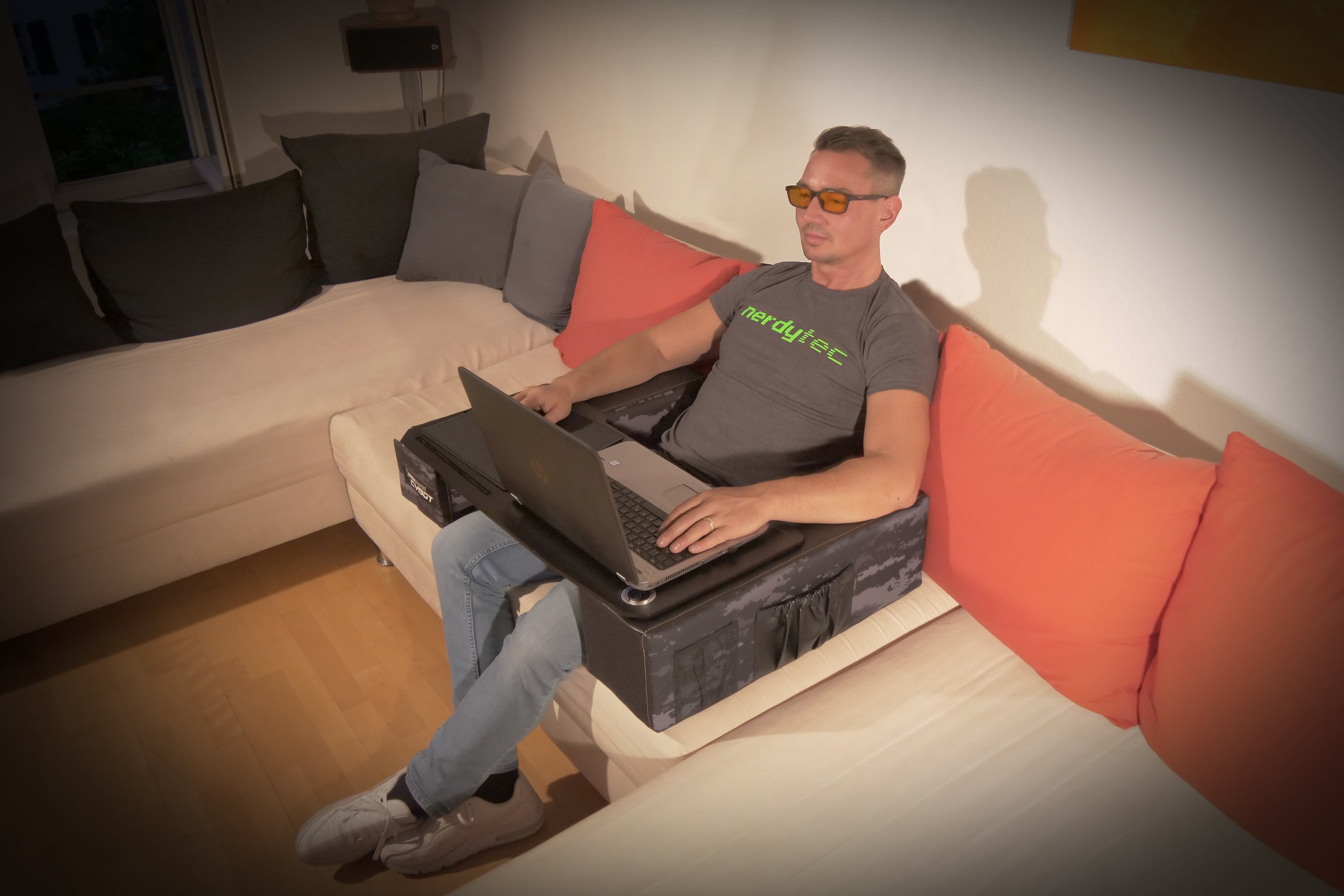 Couchmaster(カウチマスター)はソファーに座りながらノートPCやゲーミングキーボードを快適に操作する環境を実現します。