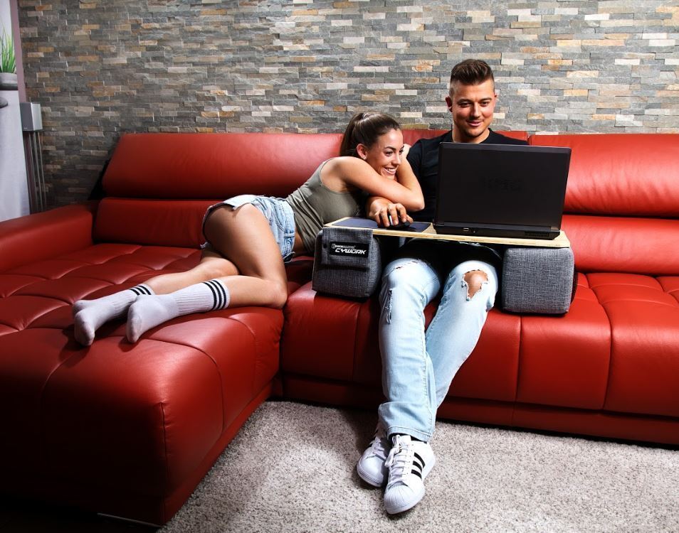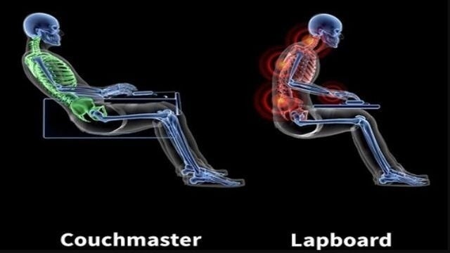 CouchmasterがあればノートPCと肘を安定させることができ、首・肩・腰をしっかりとサポートします。
