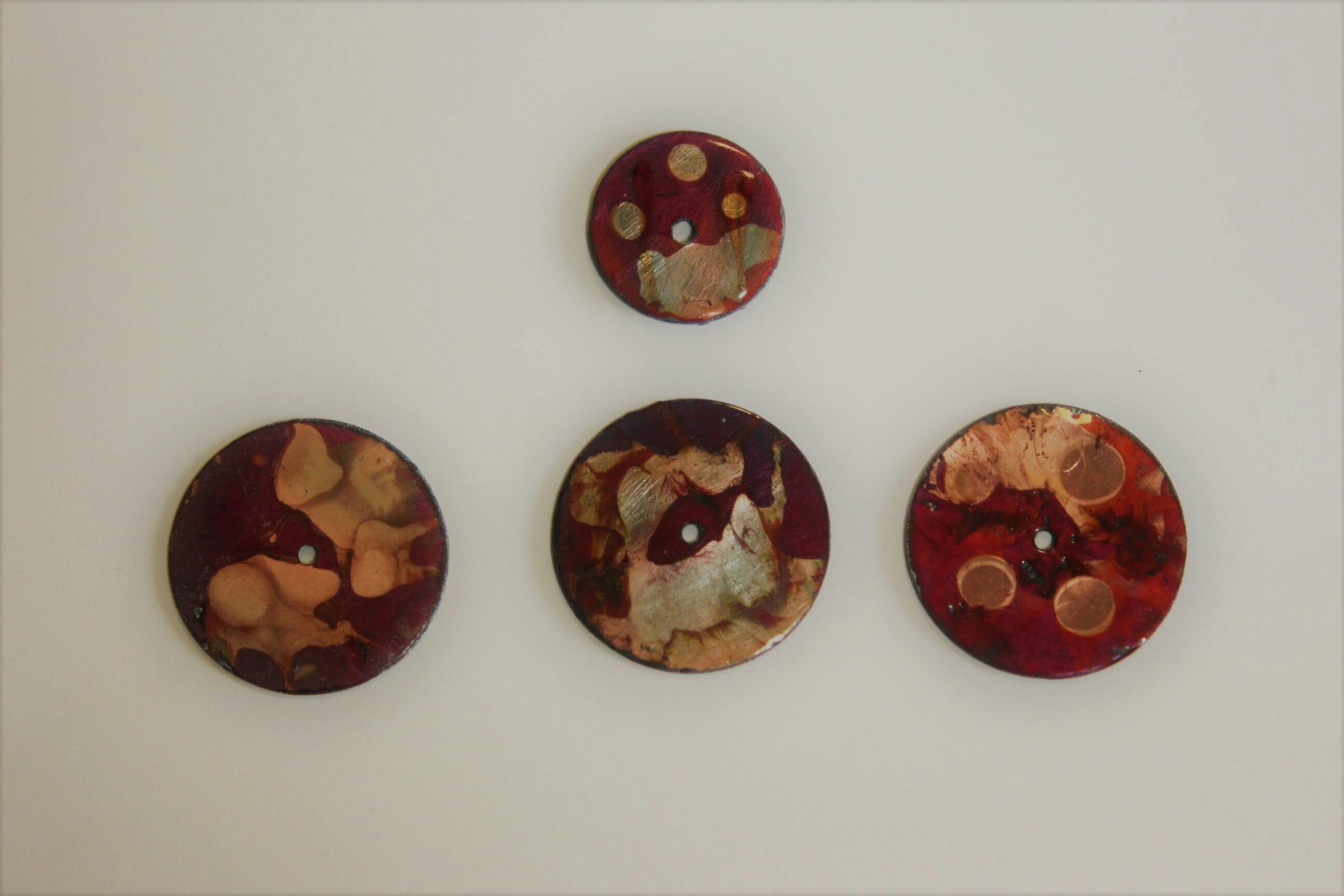 現在開発中のエナメル文字盤は亜鉛を混ぜたガラスを砕き、文字盤の上に載せてガスバーナーで文字盤全体が均一に温度が上がる様に加熱します。ガラスが溶けてきたら金属の棒で素早く延ばします。この最初に伸ばす工程で下地の文字盤の温度、ガラスの温度、延ばし方によって浮き出る模様を変化させていきます。仕上がりは透明感があり流動している様な模様がある神秘的な仕上がりになります。