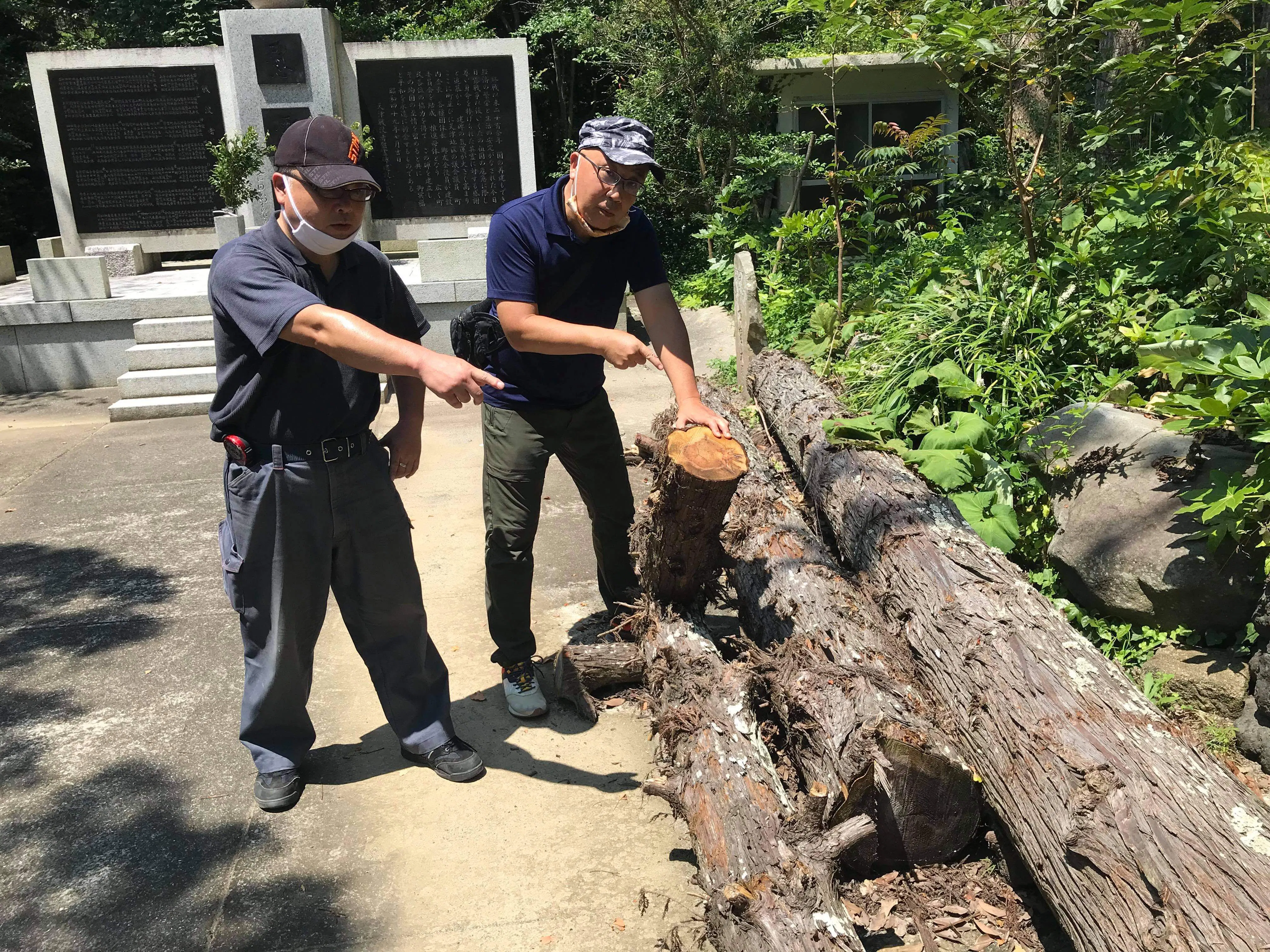 天津神明宮内に立っていて昨年の台風被害で倒れた樹木を返礼品
