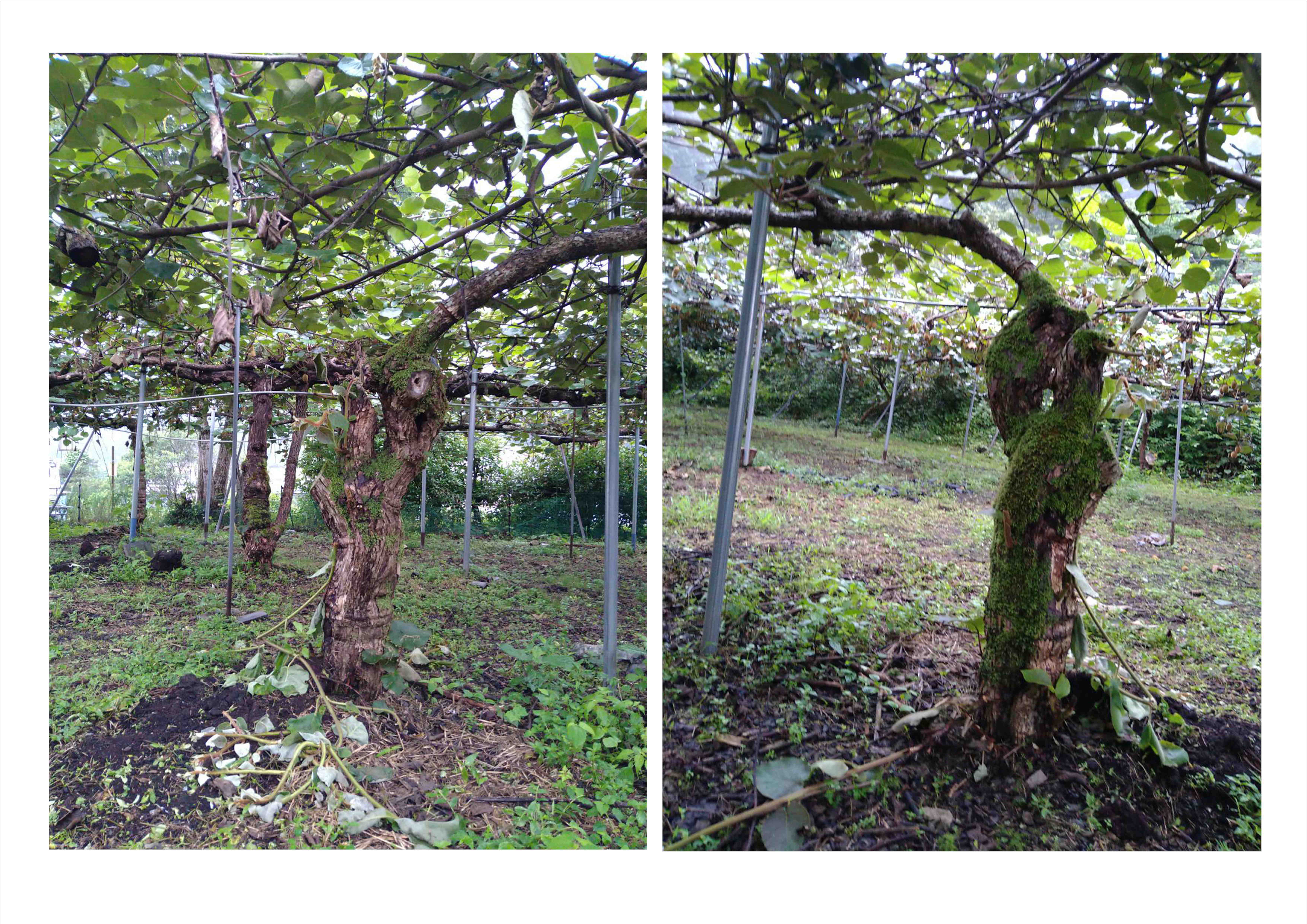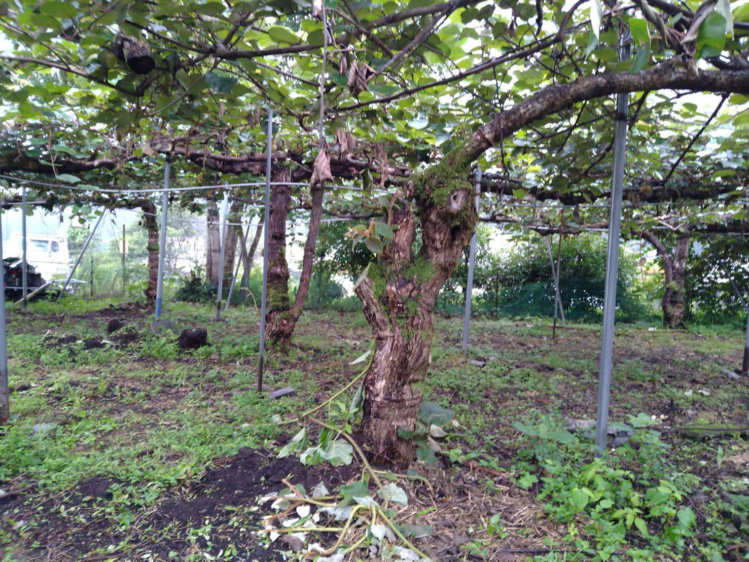 キウイフルーツの樹木の樹齢は30~40年と言われています。洞戸地区の畑には老木が目立ちます。今後生産量の拡大を目指すうえで、新しい土地にキウイフルーツの苗木を植樹していくことと、老木を新しい苗木に植え替える必要があります。