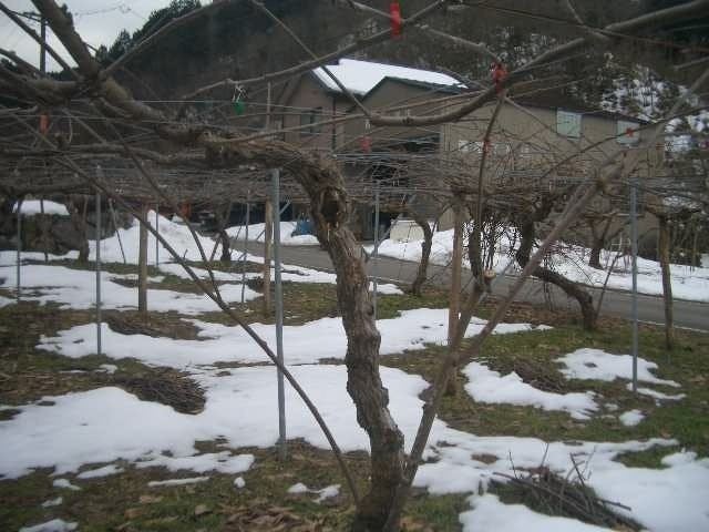 山間地で冬には雪が多く積もる。キウイ栽培には決して適した環境とは言えない。