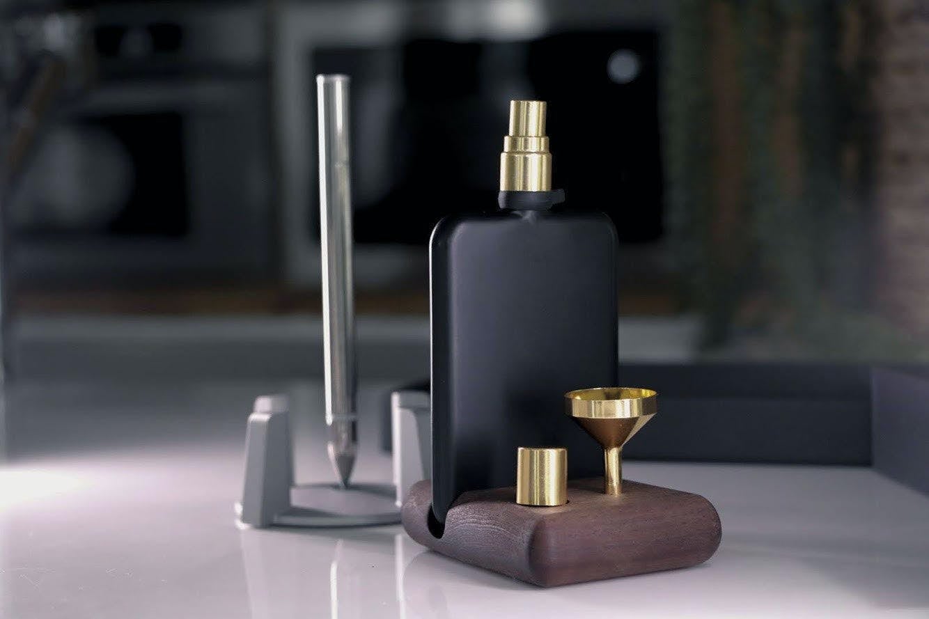 人との接触が多い仕事中もシックな消毒液を常設し、