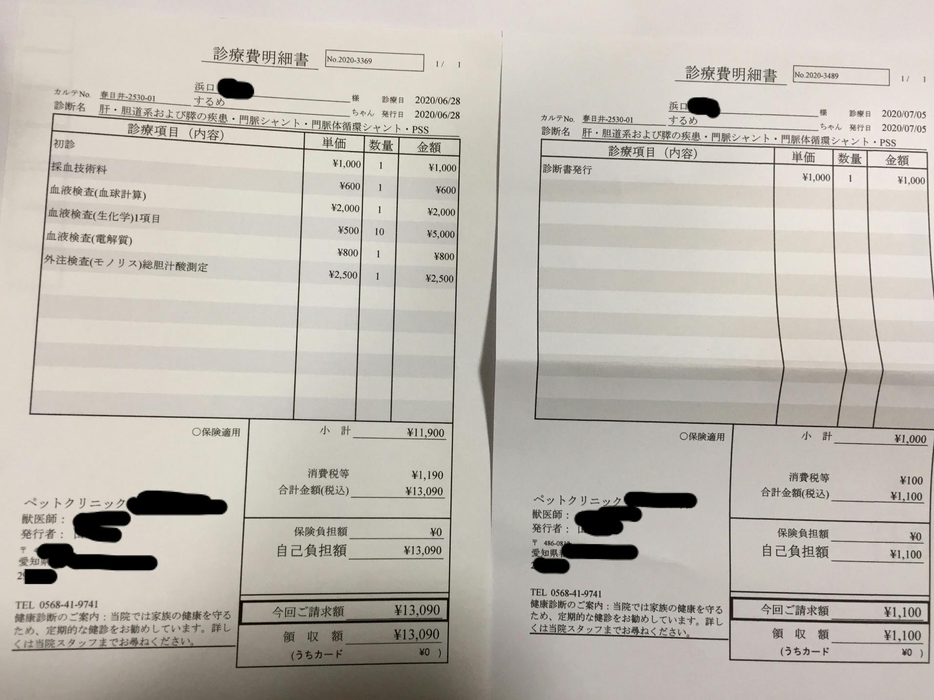 6/28 術前検査 ¥13,090