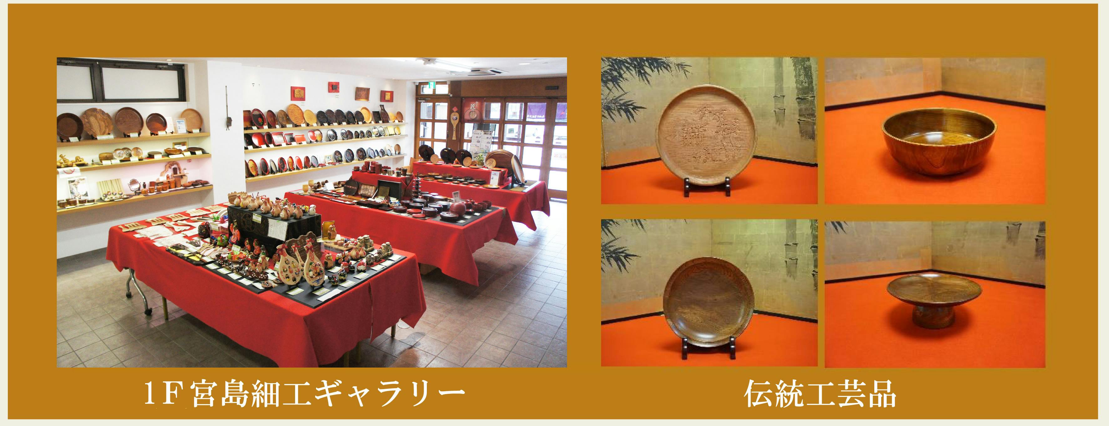 1Fのギャラリーでは、伝統産業‐宮島細工の木工作品がゆっくりご覧頂けます。