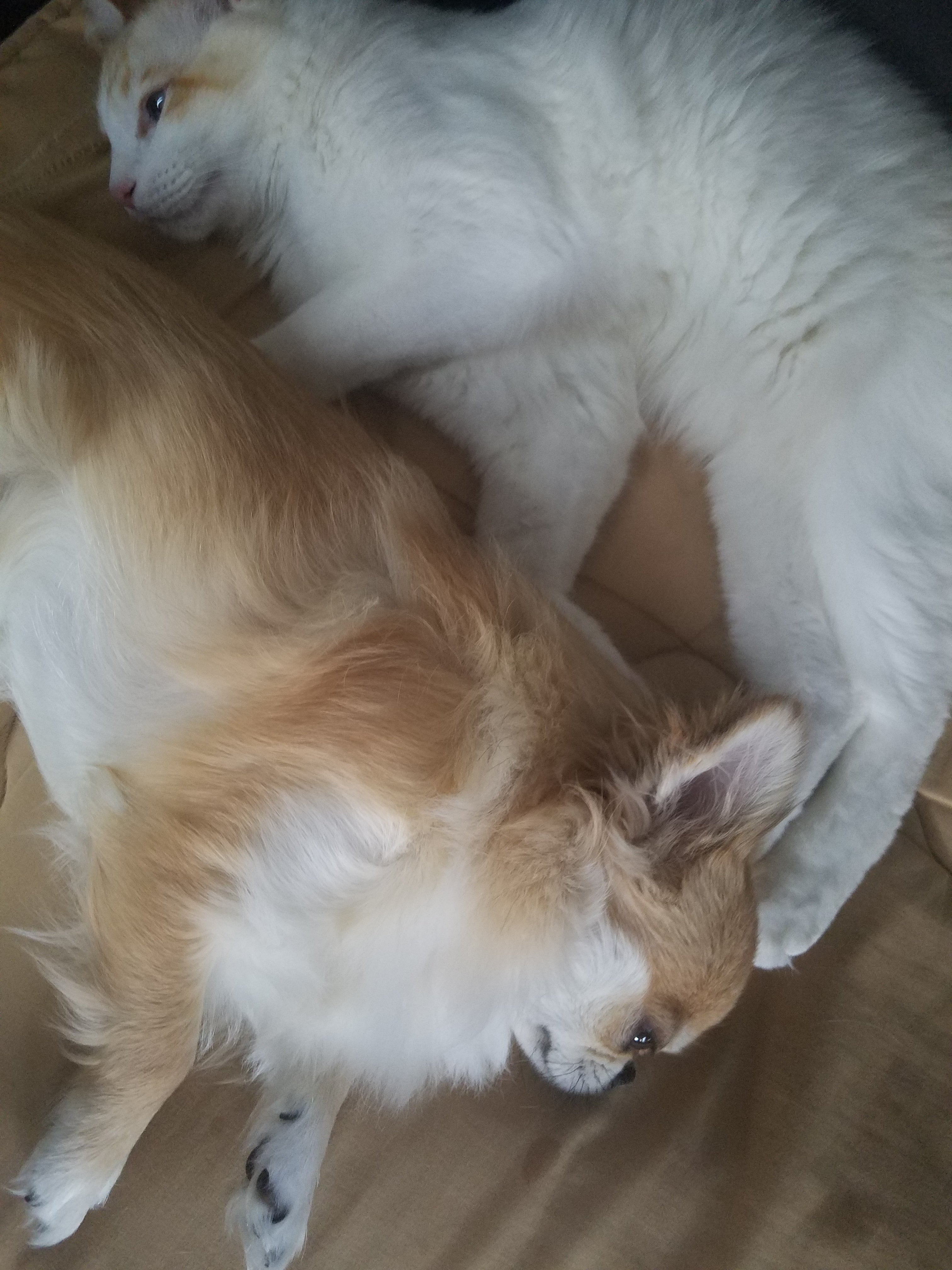保護犬(チワワ・フーガ)保護猫(雑種・だいふく)と暮らしています。
