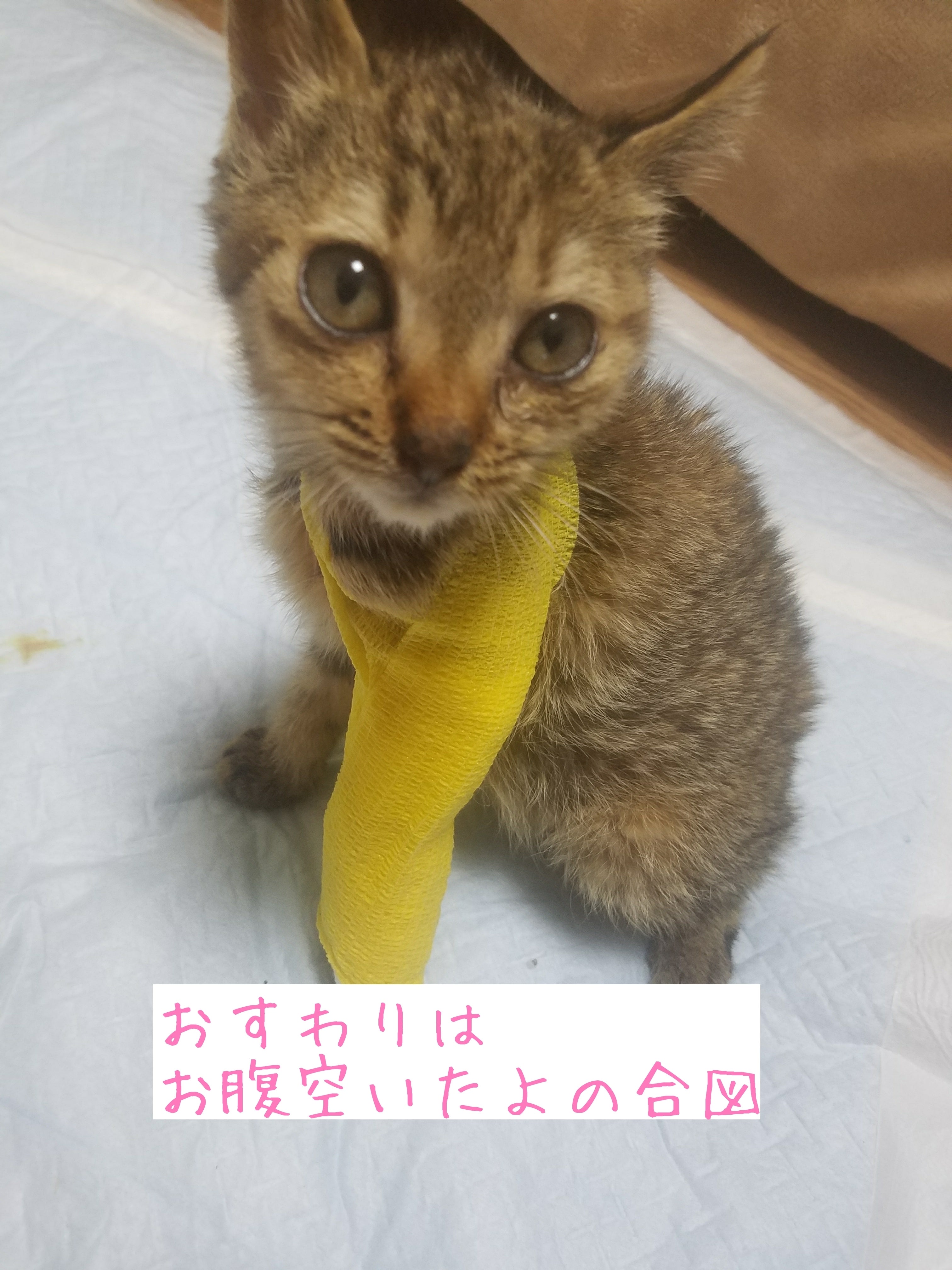 獣医師の診察を受け、人為的にロープの様なもので左前脚をきつく縛られた形跡が有る事から虐待による怪我で有る事を知らされました。