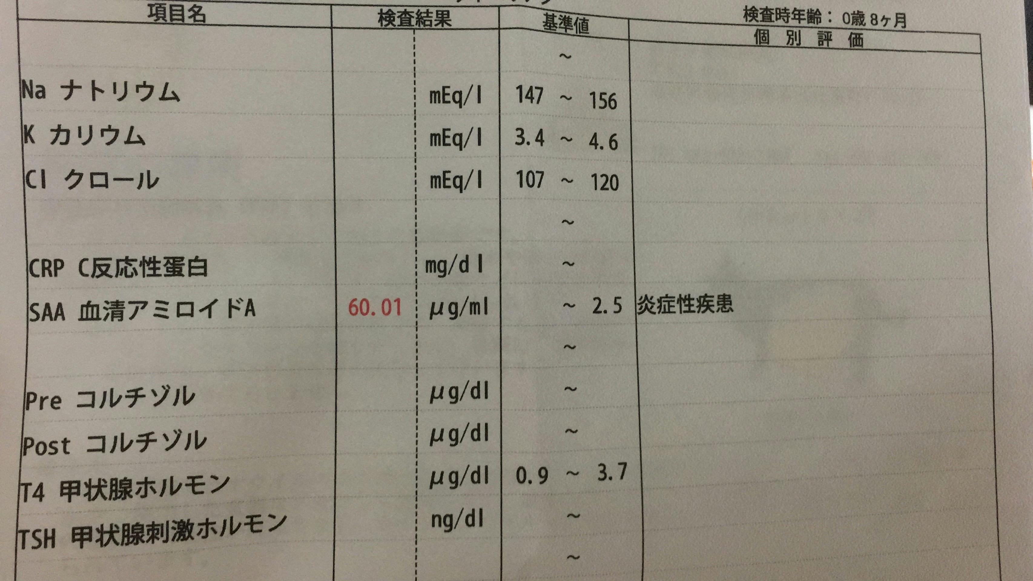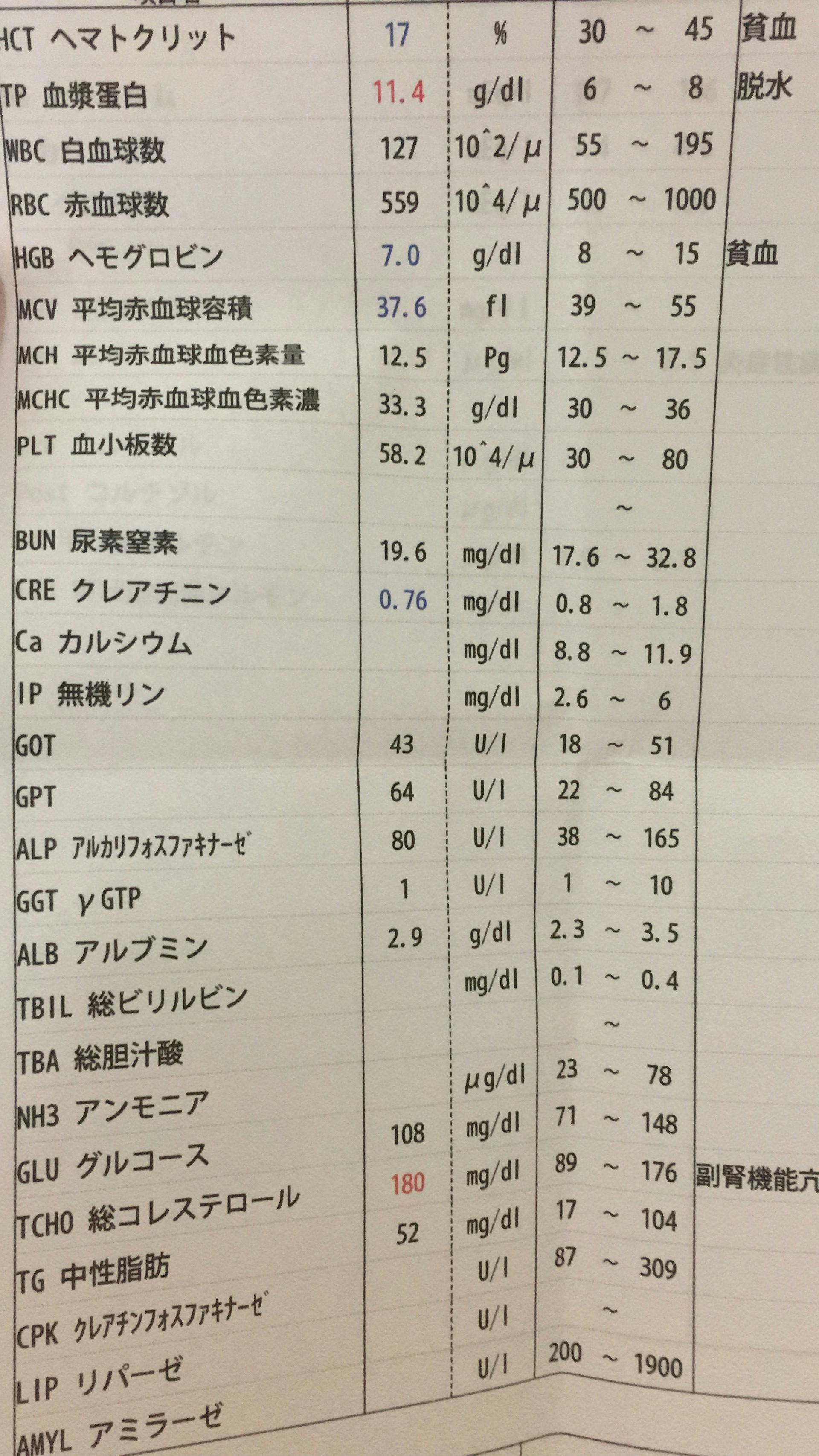 7月初めに去勢手術を行う前の血液検査をした所 異常が見つかったのです