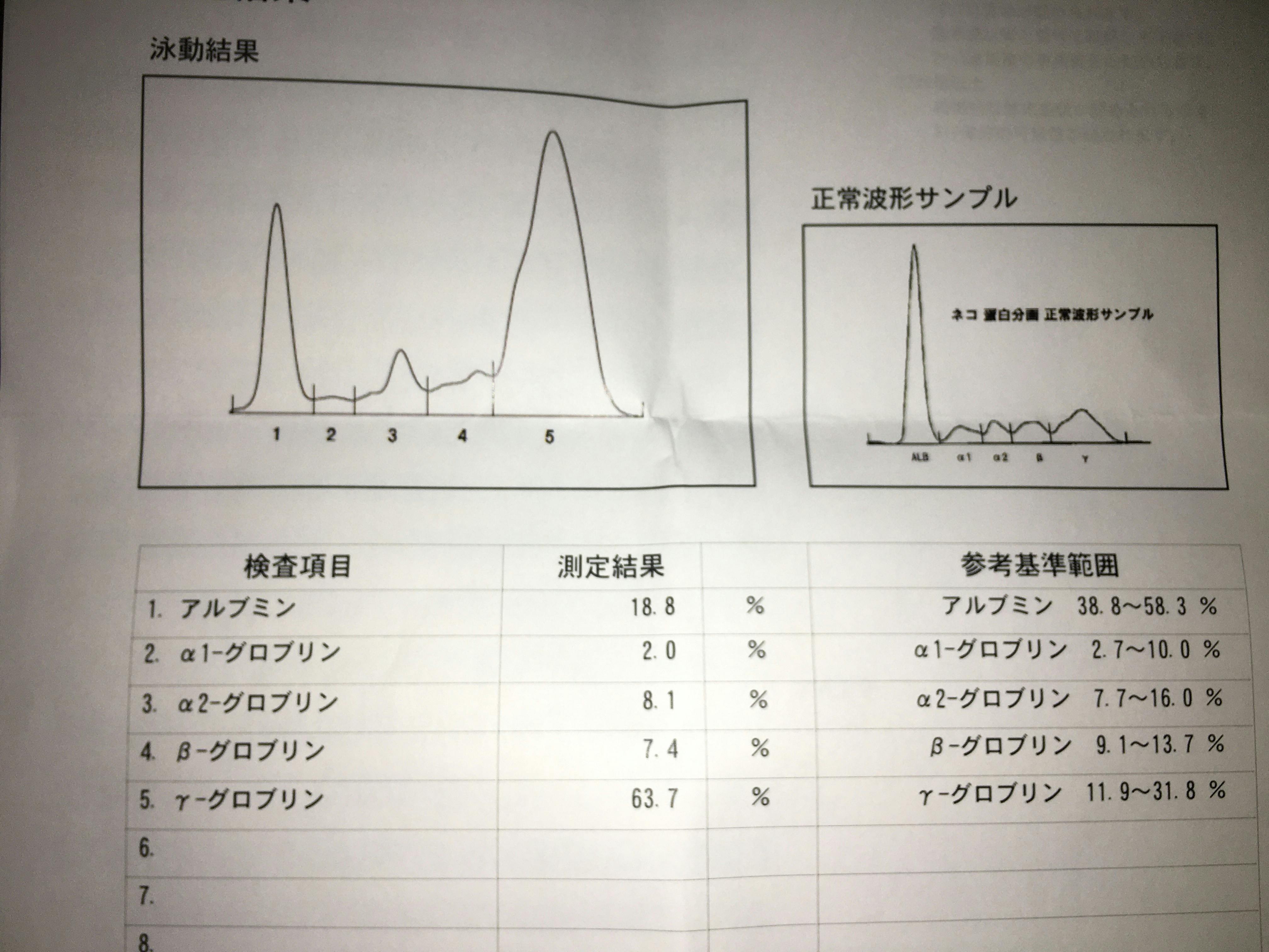 重度の貧血、脱水、腎機能に炎症が見られると言われ FIPである可能性が高いと言われました。