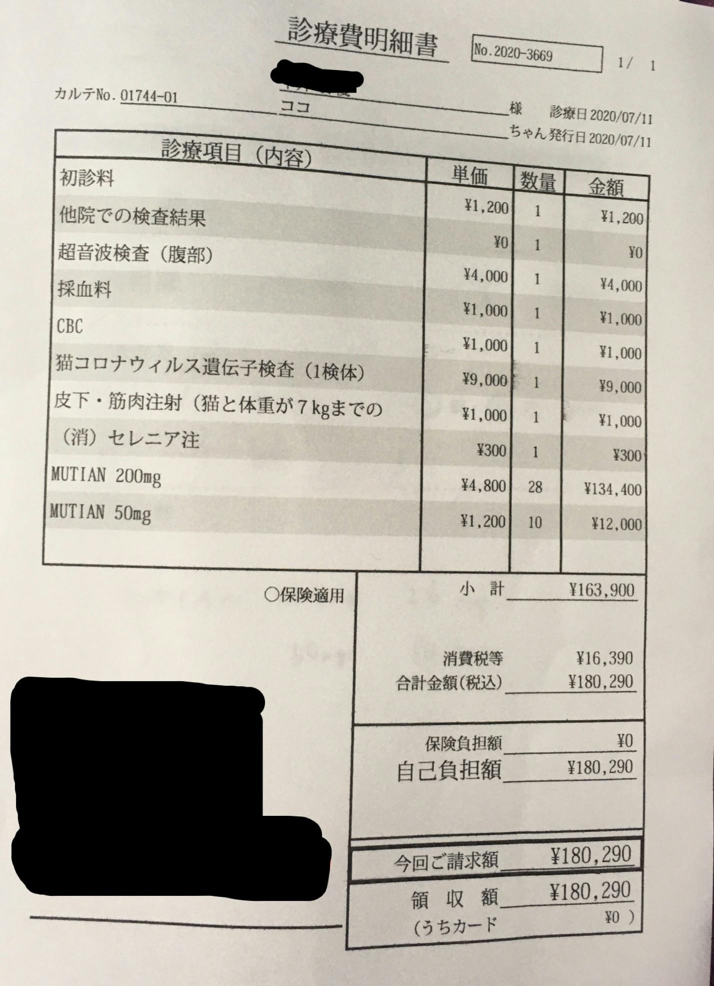 ココくんの場合、ドライタイプの中期で、体重が2.5㎏、1日の投薬に9200円、今の体重のままだとしても薬代だけで78万円かかり、体重が増えれば薬の量も変動するので、最低でも100万円以上はかかると思ってください、と言われました。
