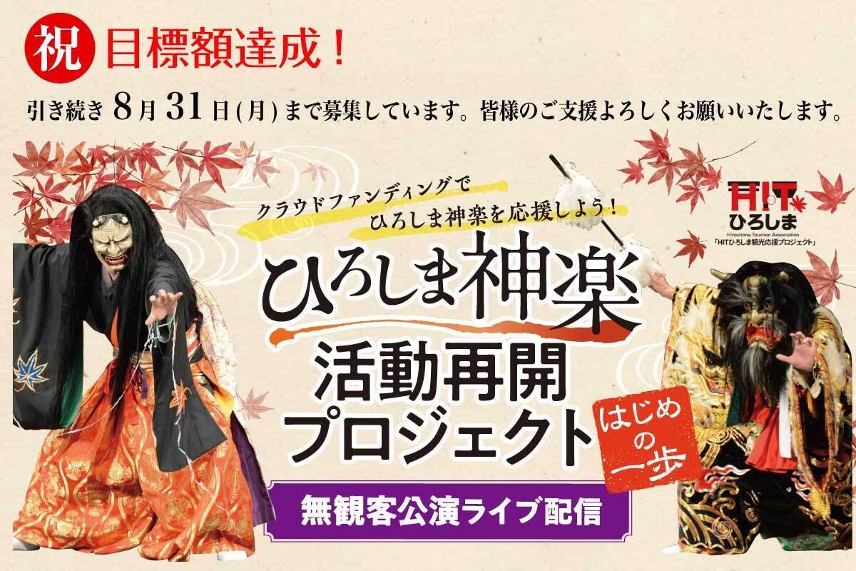 2020/08/31 08:50皆様のご支援を頂いた「ひろしま神楽活動再開プロジェクト」の無観客ライブ配信が、29日(土)の広島県民文化センターからの配信で無事終了することができました。 皆様からのご支援は、本日まで受付を行っていますが、今現在、目標額の120%を超えるご支援を頂いたおります。 本当に有難く関係者一同心より感謝申し上げます。追伸 NPOの事務局のある北広島町では、稲刈りが始まっています。 しかし、豊作を祝う秋まつりは、例年とは異なり、奉納神楽が無いお祭りを迎える事となりそうです。 戦時中でも奉納神楽だけは続いていたそうですが・・・一日も早く今までの日常生活に戻れるよう願うばかりです。どうぞ皆様もお身体にお気を付けになってお過ごしください。 もっと見るひろしま神楽活動再開プロジェクト 29日は、広島県民文化センターより配信します。