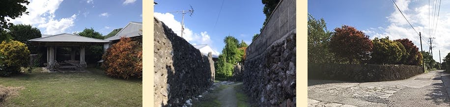 集落内にはサンゴの石垣と、昔ながらの古い家屋が並んでいます。
