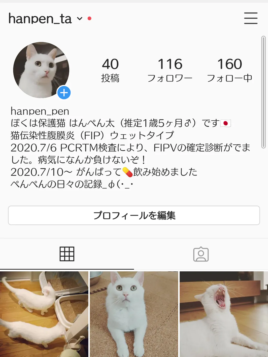 『FIPを発症した猫は100%助からない』そんな定義を覆したい!はんぺん太と同じ病気の猫ちゃんにもエールを送りながら、私たちはこの病気と闘っていきます。どうか、一人でも多くの方にこの病気について知っていただき、お力を貸していただければと思います。