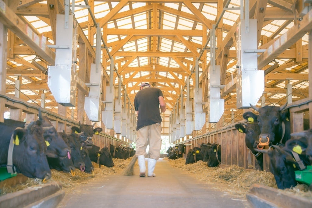 牛の価値は飼料と水と寝床で決まると考えています。牛舎は地元産の木を使いストレスを与えない環境づくりに取り組みながら、飼料も自社農園で牛の堆肥を使用した牧草をつくり、子牛から成牛に与えています。また、店舗では生肉の購入と食事ができ、地元産の肉を食べていただける喜びを地域とともに分かち合ってきました。