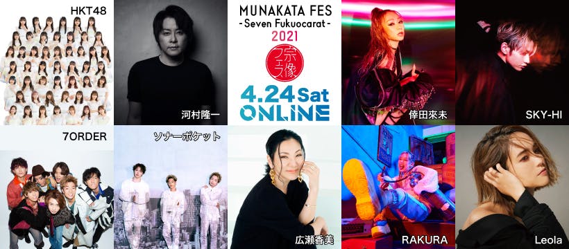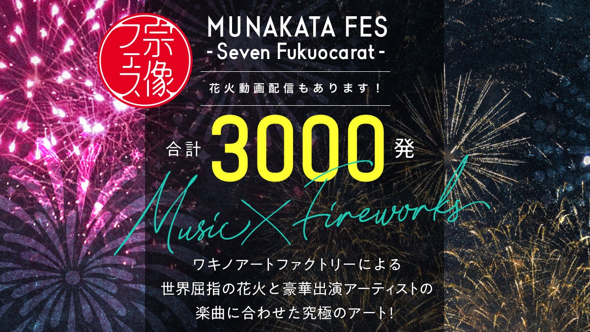 昨年、延期となった「宗像フェス」。今年は、オンライン開催として再発進します。 新型コロナウィルスの感染拡大に翻弄され続けたエンターテイメントの再出発として、宗像フェスにしか実現できないオンラインだから実現できる地方創生音楽フェスを世界に発信します。 福岡を代表するスポットで日本トップクラスのアーティストが奏でる最高のLIVEパフォーマンス!!そして宗像フェスの代名詞、 出演者の楽曲に合わせた「3000発のミュージック花火」の配信はプレミアムな時間を体験できます。 福岡の魅力ある7カ所で放つ輝きを皆さんに届けたい!「Seven Fukuocarat」は「配信型音楽フェス」として夢のステージを実現します。