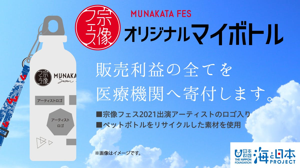 宗像フェスは、日本財団と共に海の環境を守るプロジェクトを2年前より行っています。問題の海洋プラスティックを回収しリサイクルしたグッズにアーティスト全員のロゴを入れた、環境と夢をつなぐプロジェクトを企画しました。