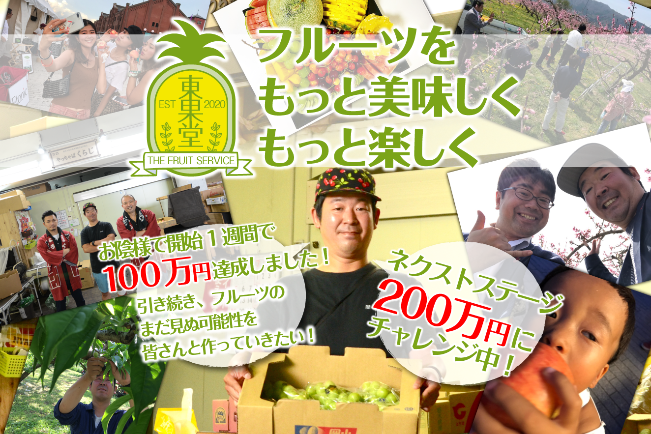 こんにちは!東果堂の岩槻です!8月1日より1ヶ月間開催させていただいた、CAMPFIREでのクラウドファンディングのリターンの初回発送がほぼほぼ完了いたしました!JA全農長野さんや、やっちゃばくらじさんのお力をお借りして、本当に素晴らしいクオリティーのフルーツを惜しげもなく入れることができました。箱を開けた皆さんのお顔を見ることができませんでしたが、きっと喜んでいただけた事だと信じています。10月に入り、東果堂にもちょっとづつ仕事らしいお話がいくつかいただけております。また、フルーツを通して楽しい場を作るような企画や案件にも加わらせていただく機会も出てきております。本当に有り難いことだと感じます。フルーツの持つポテンシャルを引き出して、一人でも多くのフルーツファンを育てていけたらと思っています。一方で、会社経営という観点でいうと、ズブの素人で、まだまだ不勉強なこともたくさんありますが、一つ一つが経験となって、確実に自分にとっても、会社にとっても血肉になっていると実感しています。応援してくださった皆さまのためにも、これからファンになってくれるかもしれない皆さんのためにも、もちろん簡単に倒れる事のないよう、今年は地力をつける年にすべく精進してまいります!複数回リターンを受け取られる皆さま、引き続きお楽しみに♪また、前回のリターンで美味しいな楽しいなと思っていただけた方にも、またご利用いただけるようにワクワクするフルーツをこれからも探してご紹介してまいります!引き続き、東果堂をご愛顧のほど、どうぞよろしくお願いいたします!令和2年10月1日株式会社東果堂代表 岩槻正康