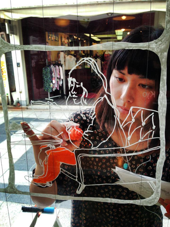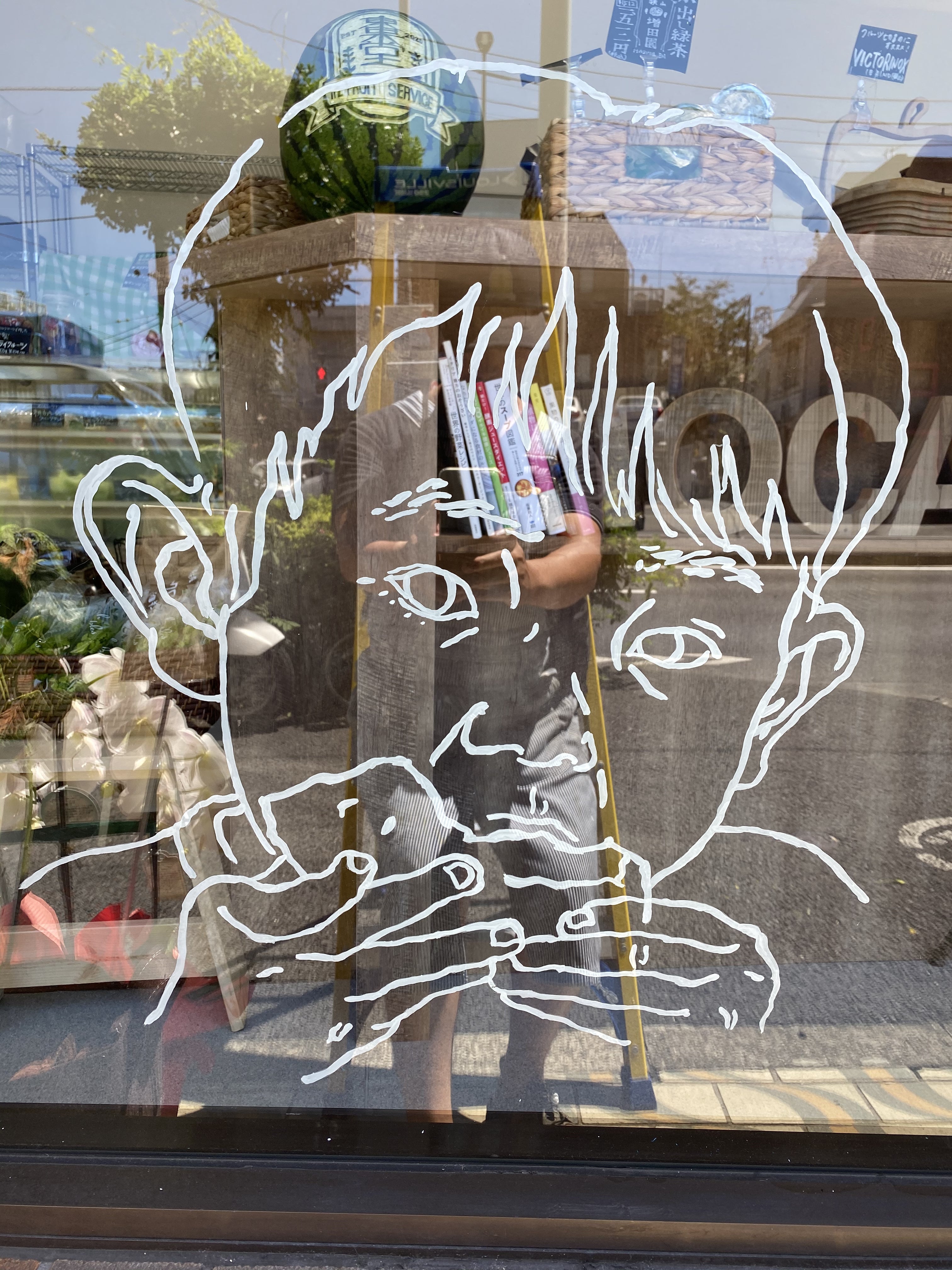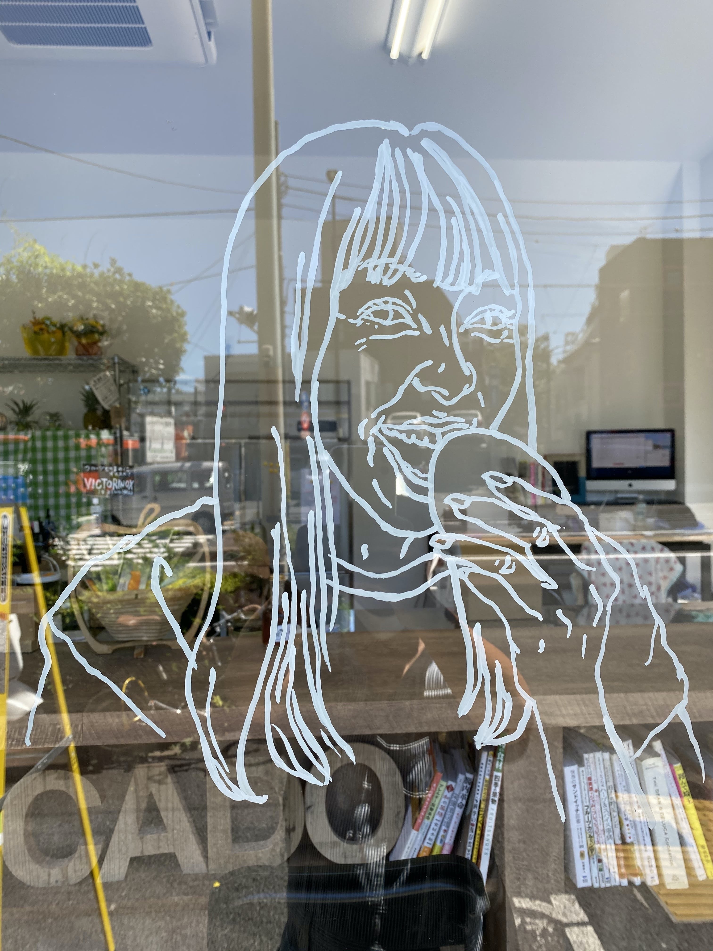 さて、オープン当日もライブペイント的にイラストを描き続きてくれたMariyaさんですが、オープンの日が終わる瞬間に見事描き終えてくれて、東果堂の窓が本当に最高なキャンバスになりました。是非、東果堂の窓だけでも見にきてください♪