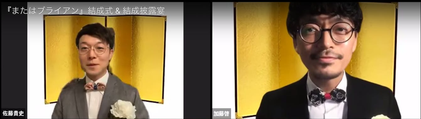 どうしようもないままに、皆さんと同じように自宅で自粛生活をしていましたが、活動への意欲はなくなりませんでした。コロナ禍以前から撮影し、準備をしていたYouTubeチャンネル『またはブライアンTV』を始動し、たくさんの方々に協力をしてもらい、「またはブライアン」を知ってもらったことは、僕たちに今一度「舞台やりたい」と強く思わせてくれました。YouTubeで観てもらいたいこともたくさんあります。でも、お客さんが近くにいて一緒に笑えるほうが、もっとたのしい。なので、皆様のご協力を得て公演をしたいです。