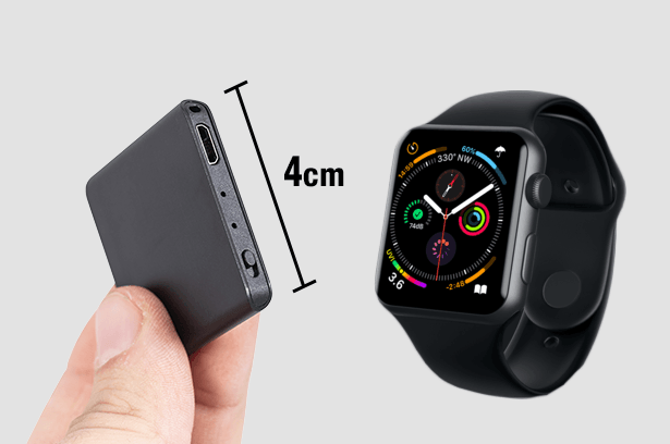 TileRecはApple Watch(40mm)とほぼ同じ大きさの超薄型レコーダーです。