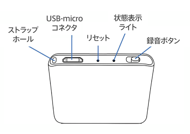 ※録音中に赤色LEDライトが点滅し始めたら、充電してください。