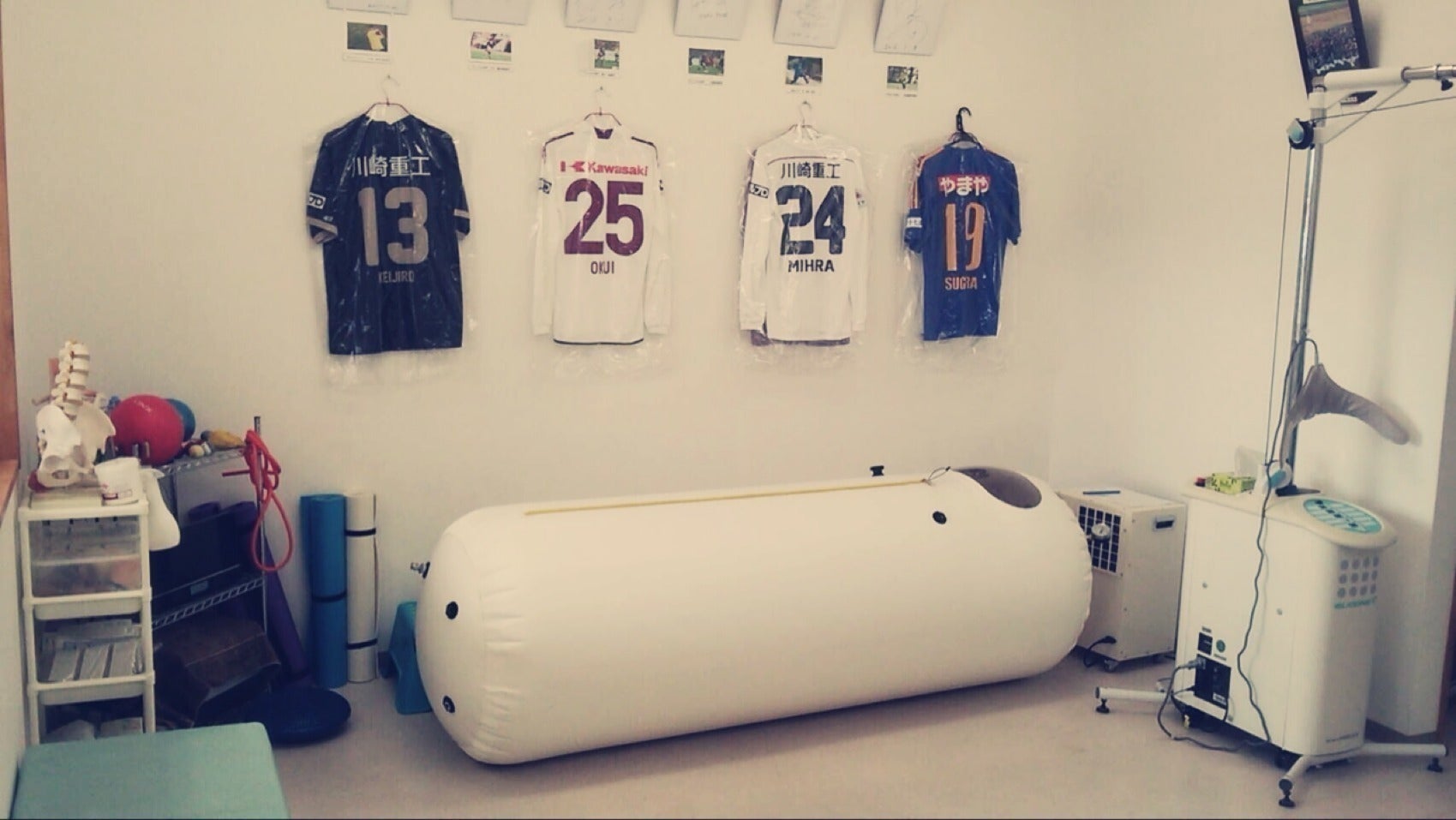 院内には、酸素カプセルやインディバアクティブ(高周波温熱機器)、エレサス·アキュスコープ(微弱電流機器)などなど、プロスポーツクラブチーム並みの設備も揃っています。