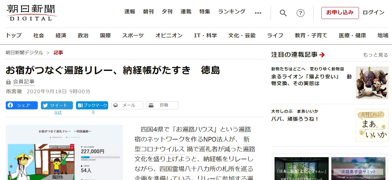 この記事を書き終わった頃には「昨日」になっていると思いますが、本日の朝刊(徳島版・香川版)でも朝日新聞へ掲載されました!