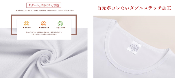 ▼素材 モダール繊維 肌優しい快適素材。吸汗性、通気性に優れた爽やかな着心地です。