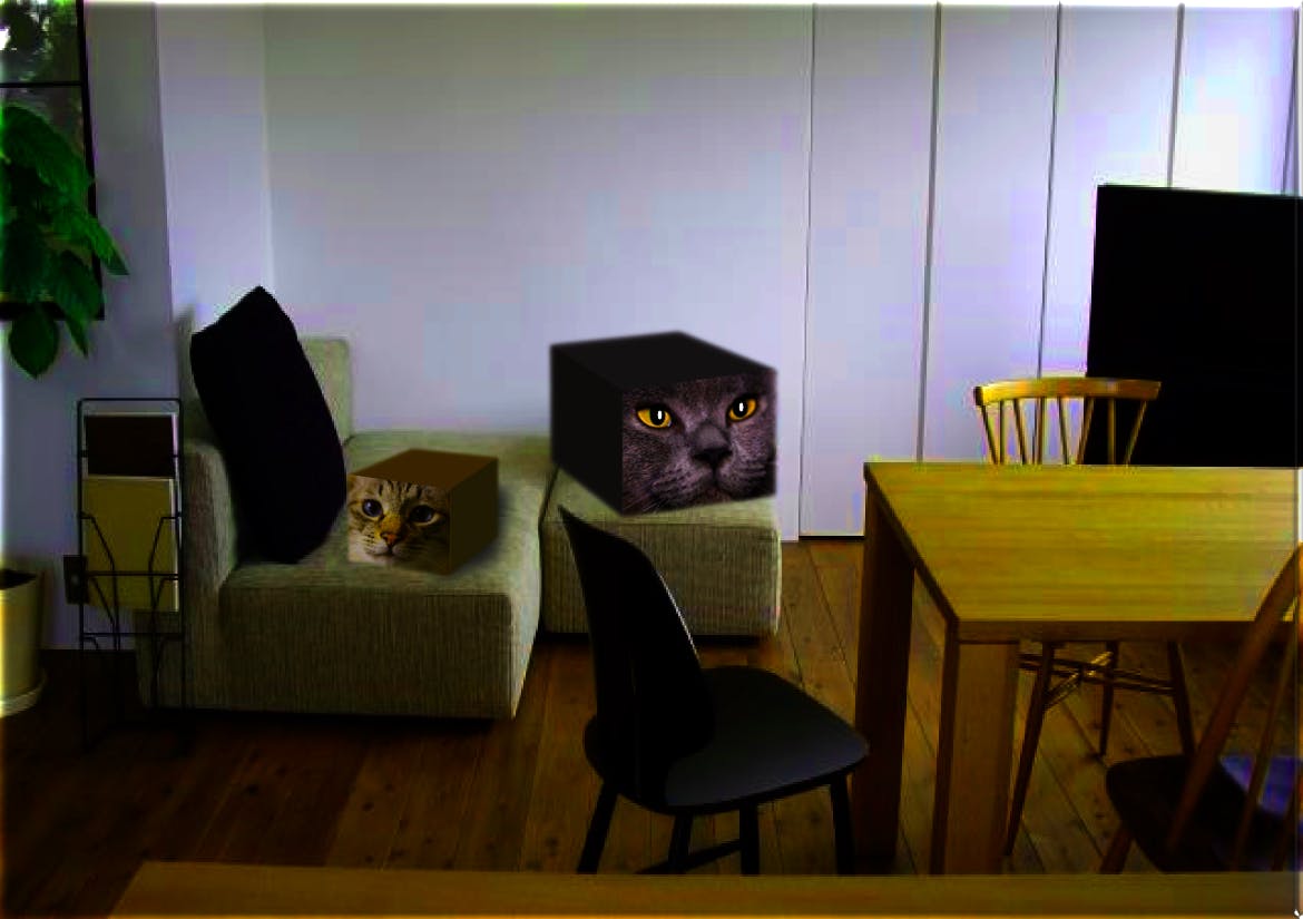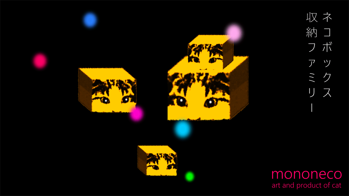 モノ猫バコニャンは、「愛猫が、身の回りの生活品と一体化し、様々なモノ、収納アイテムに変身したら…」、という妄想、空想から生まれました。
