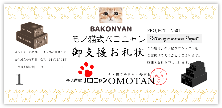 〇リターン1【モノ猫バコニャン「♥お気持ち応援」プラン】