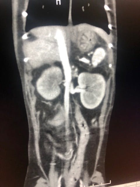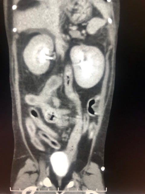 その日のうちに超音波検査、翌日CT検査を実施し膀胱に近い腸に腫瘍があるという事でした。