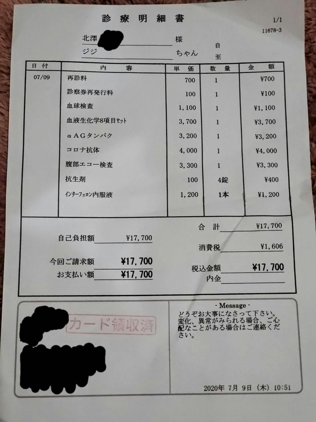 更に通院費用・定期的な血液検査・エコー検査もあり,お支払いする手数料17%を勘案すると合計80万円がジジの治療のための費用として必要である状況となります。