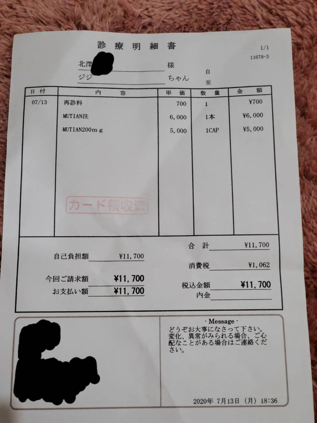 すでにMUTIAN治療を始めており、その明細になります。