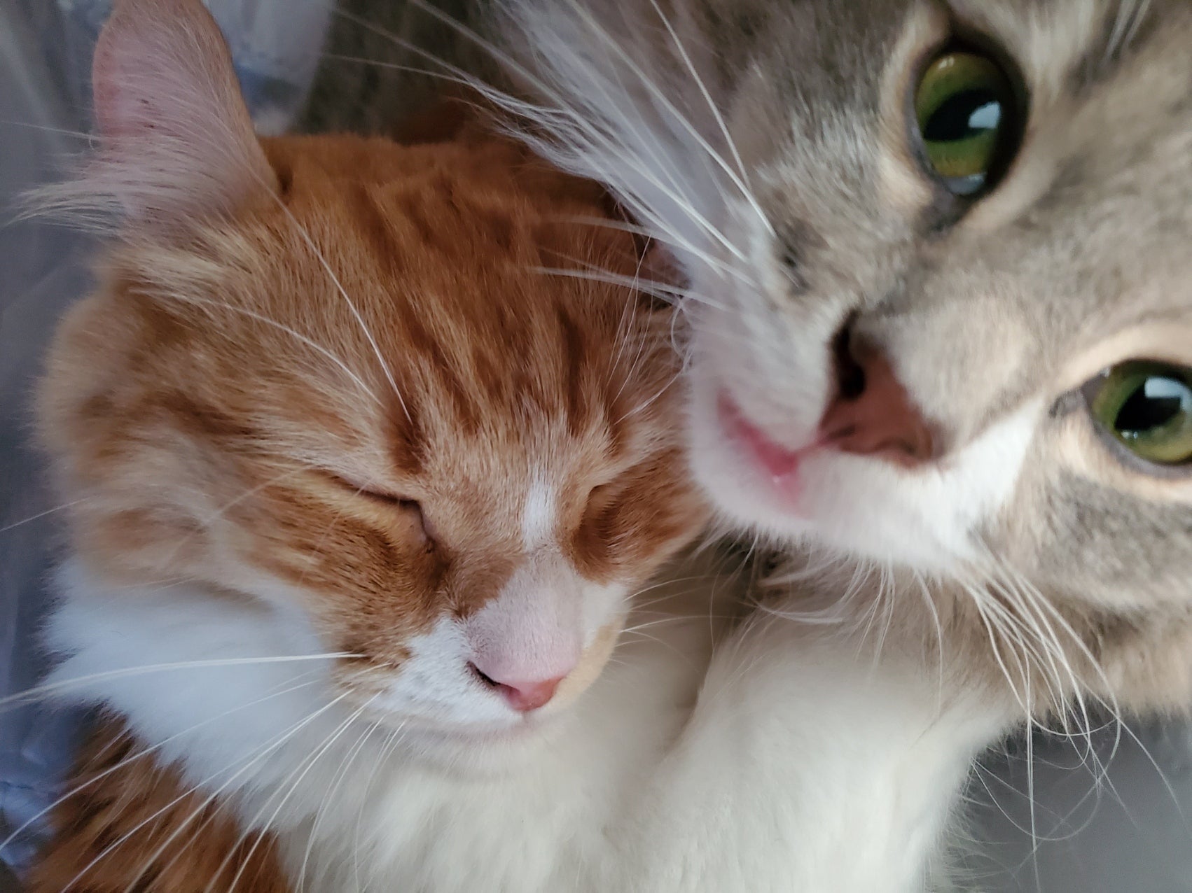 この写真、ジジはもちろん可愛いのですが後ろの先住ちゃんの顔とおデブ加減がもっと可愛いです…!!!