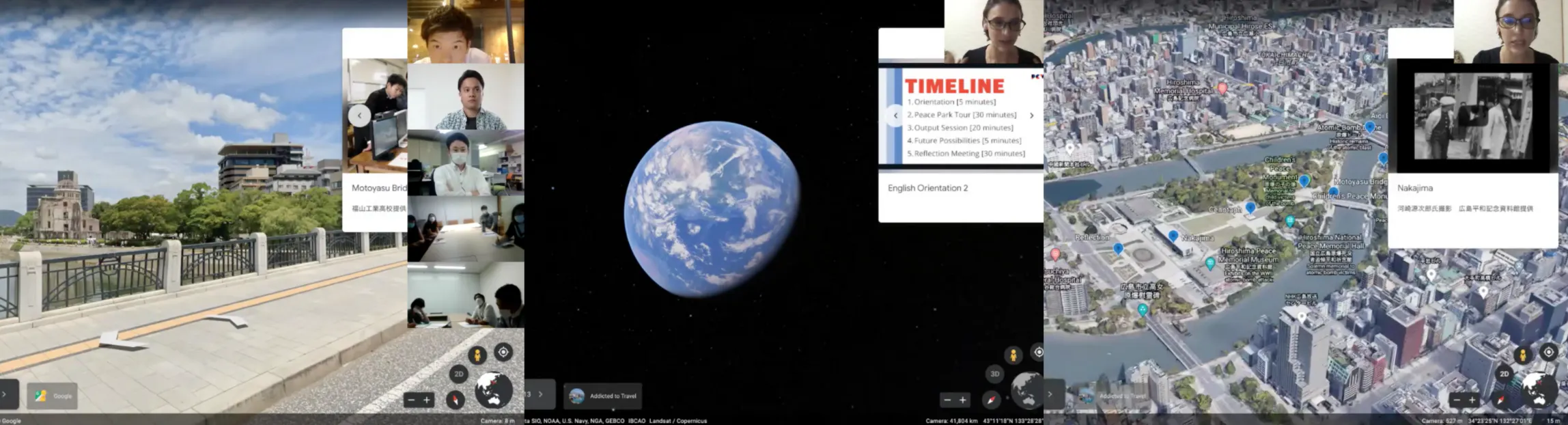 アプリやオンライン会議システムを活用し、まるで広島に訪れたような感覚で主体的な平和学習の場を提供します(日本語英語対応)