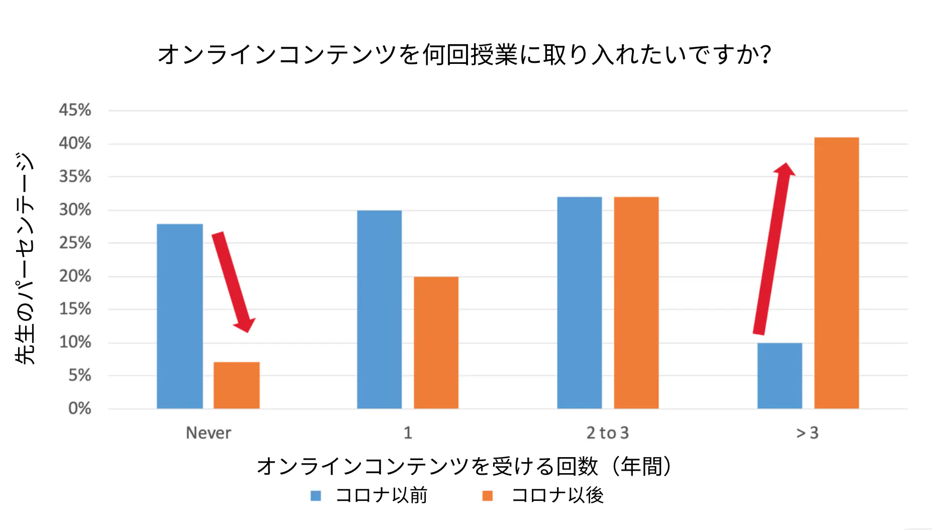 コロナ以後、先生の約75%が、複数回のオンラインコンテンツ授業を望んでいます。