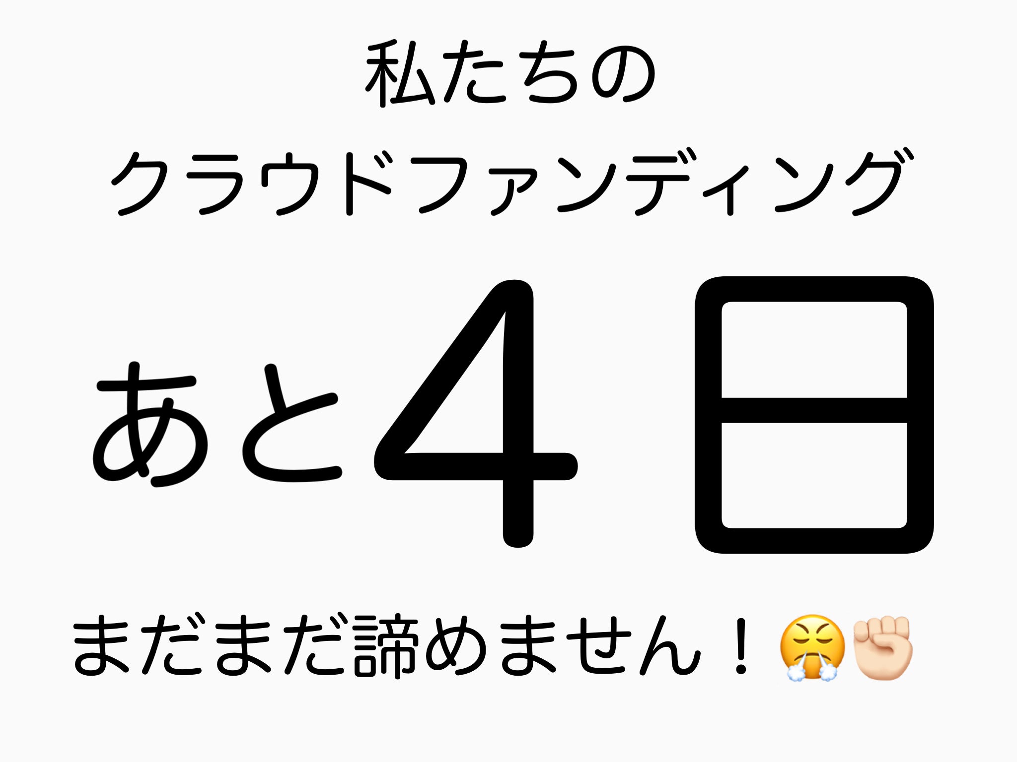 7月28日から始まった、私たちの初めてのクラウドファンディング挑戦もとうとう残すところ4日となりました!
