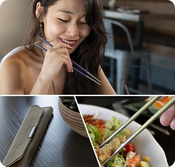 チタンは、天然の抗菌性を有することで知られています。 また、非多孔質および非粘着性という性質のおかげで、割り箸のように内部にものがしみ込むことはなく、掃除も簡単です。