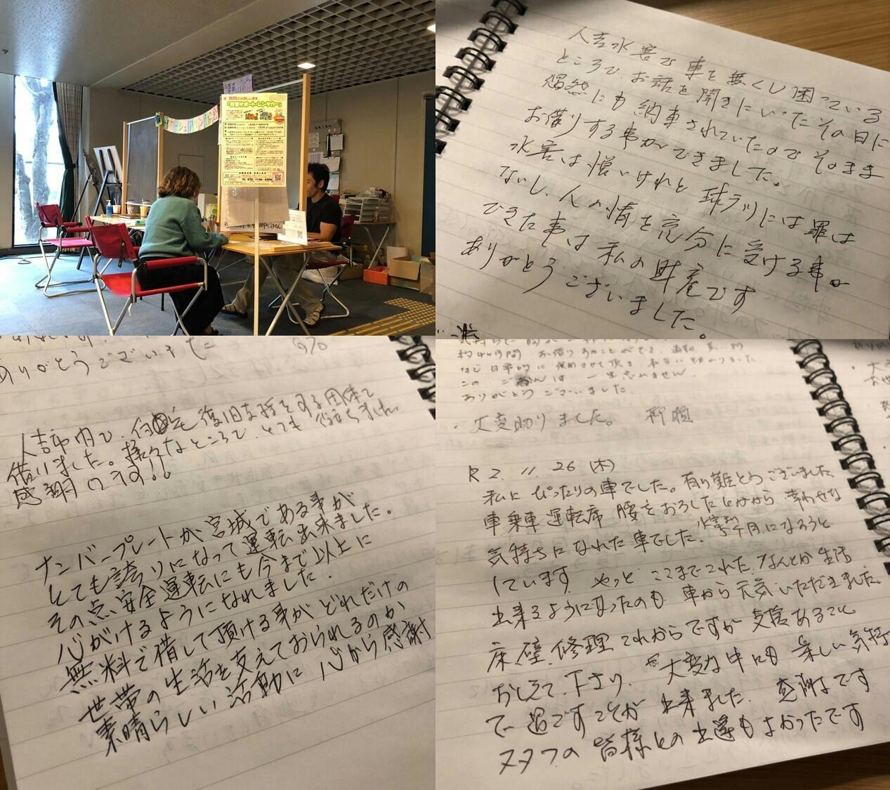 2020/12/05 17:00熊本、大牟田、日田、佐賀での令和2年7月豪雨支援を始めて約4カ月。11月30日をもって無料貸出し期間終了を迎えました。11月になって連日ご返却に訪れる方の姿が多くなりました。「3ヵ月お世話になったからワックスかけたよー!」「ピカピカに掃除したよー!」と貸出したときよりもきれいになって返ってくる車もあり、ご寄付いただいた方々の思いも紡ぐこともでき本当にうれしく感じました。車が納車され、笑顔でご返却になる方もいますが、「これを機に運転やめなさいって言われちゃってね…。でも車がないと仮設から好きな温泉に行くこともできないのよ…」と寂しそうな表情でご返却になる方もいらっしゃいました。ほっとするだけでなくこの先に私たちにできることは何だろうと考えさせられる最終日でもありました。ご返却の時に利用者の方々からメッセージをいただいているのですが、その中に「宮城ナンバーであることがとても誇りになって運転できました」と書かれたメッセージを見つけました。コロナ禍で県外ナンバーが傷つけられたりというニュースや県外からなかなか支援に入りづらい状況でしたが、宮城ナンバーを誇りに思っていただけたこと、東日本大震災後から活動する私たちのことをそのように言っていただけたように感じ、とても嬉しい気持ちになりました。無料貸出支援は一旦区切りを迎えましたが、今後は返却された車を活用して次の災害に備えるための仕組みづくりに取り組んでまいります。また、車を使った様々な支え合い活動も熊本で実施できるように調整を進めてまいります。これからの活動は、ぜひ私たちのホームページ、Facebookページをご覧ください。ホームページ:https://www.japan-csa.org/Facebook:https://www.facebook.com/japancsa引き続き、応援よろしくお願いいたします。 もっと見る