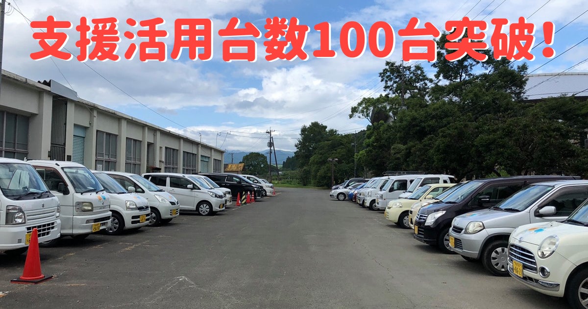 熊本で初めての貸出を行ってから1ヶ月と少しが経過。沢山の方々に情報拡散の協力をいただき、現地で貸出するための車の台数が100台に到達しました。