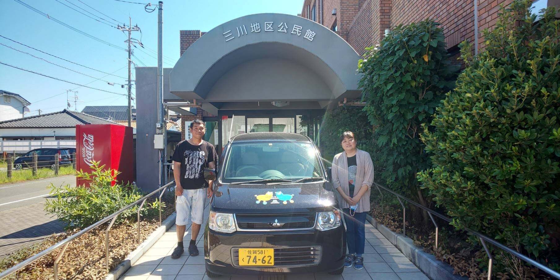 災害サポートレンタカーの貸出し場所になっている三川地区公民館は避難所からの送迎バスの停車場にもなっていて、避難所からバスで来てここで車を借りて、現在も続く家の片付けに活用されています。