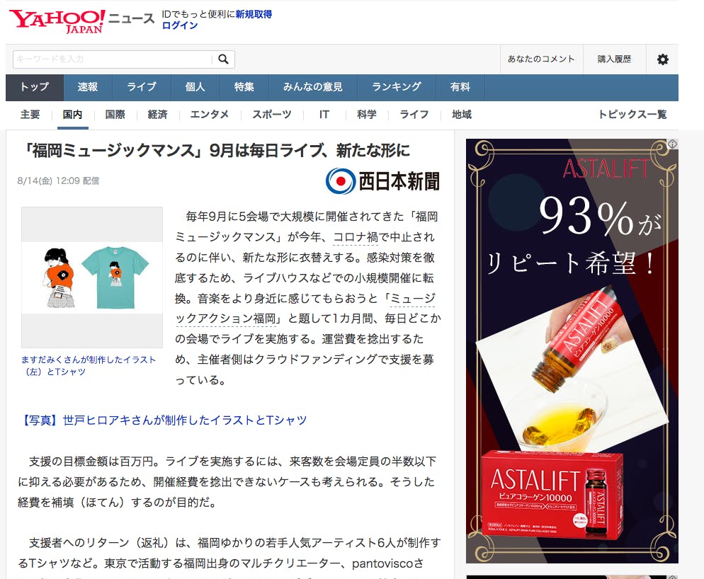 2020/08/14 16:25MUSIC ACTION FUKUOKA、今回のクラウドファンディングの取り組みについてYahoo!ニュースTOP(西日本新聞さん)でご紹介いただきました!記事はこちら もっと見る