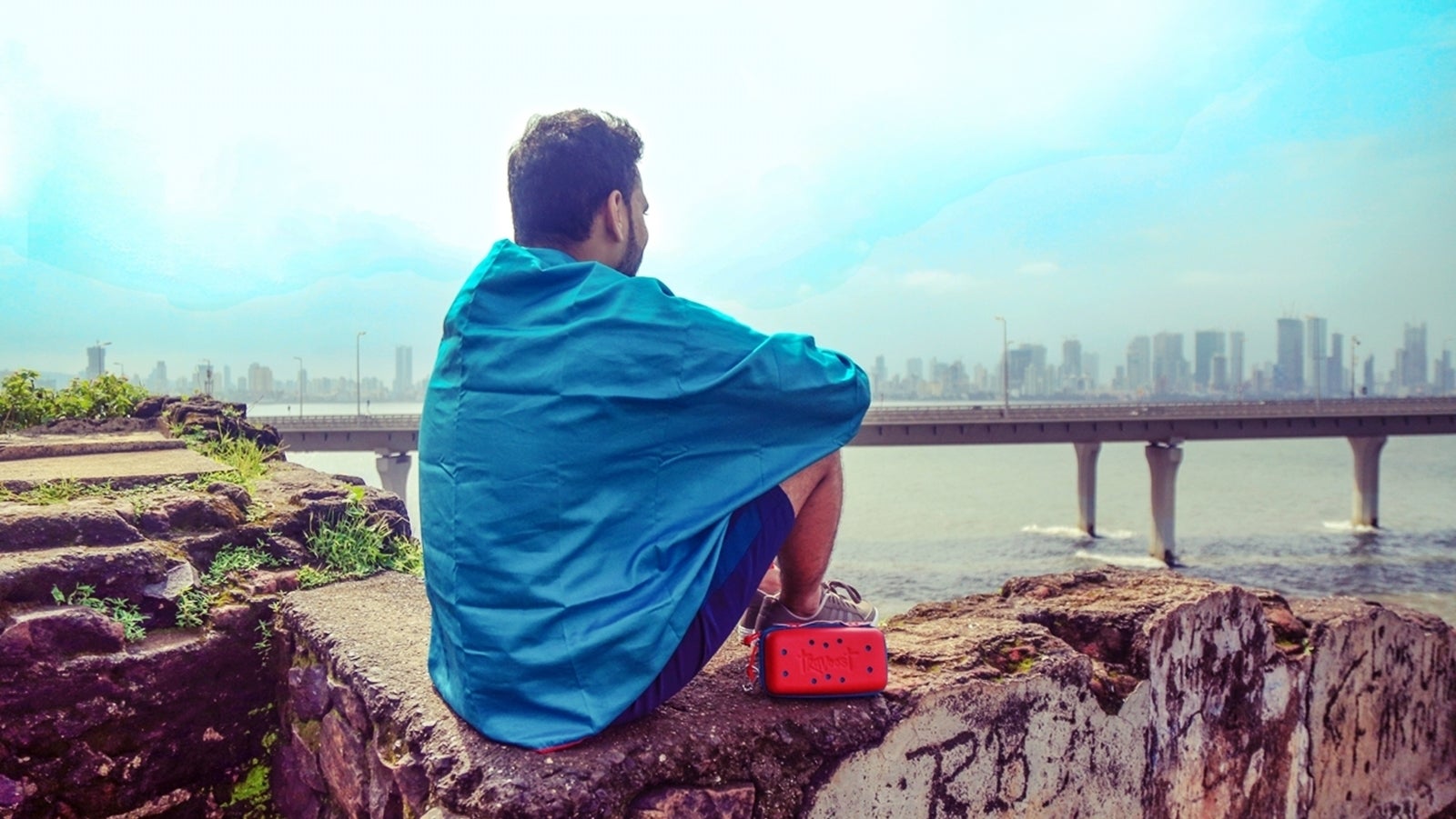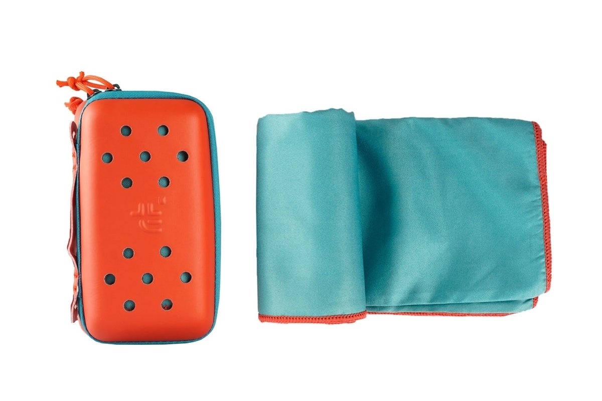 ケース・ブラッドオレンジ/タオル・ターコイズ