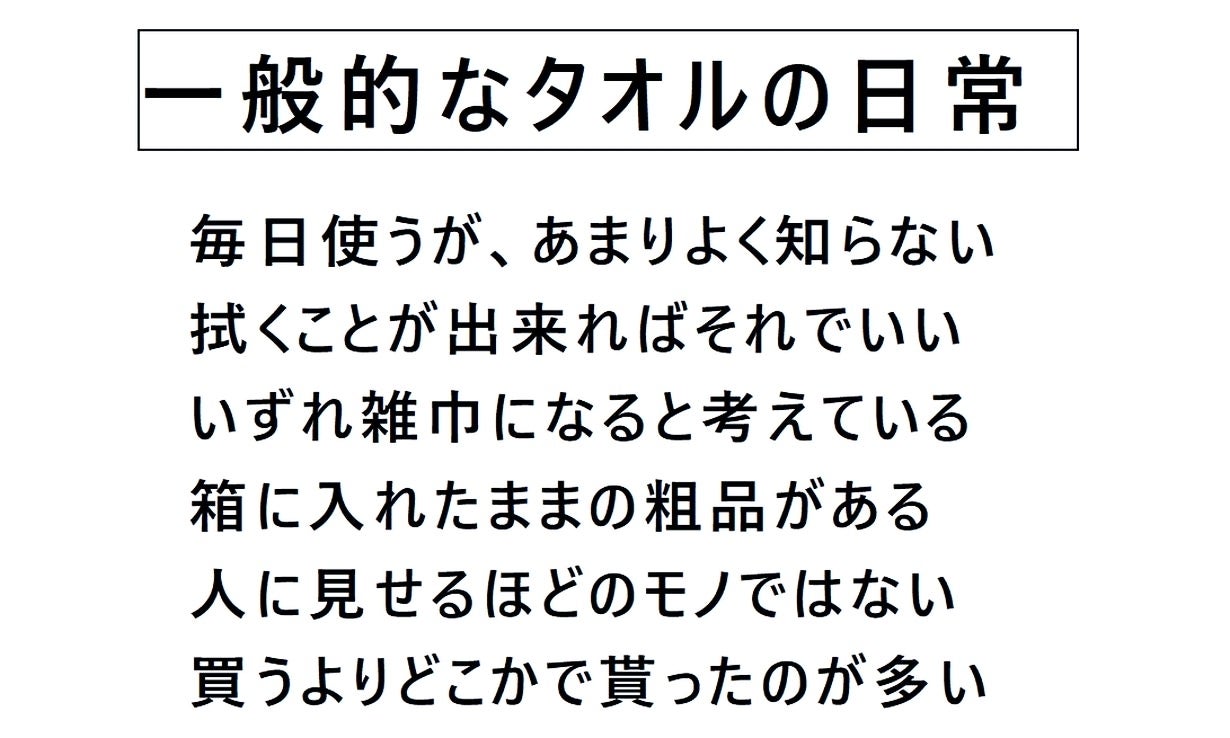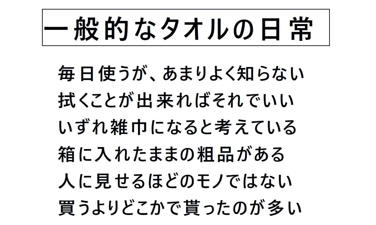 「タオルのサイズをもっと大きくする必要がある」と考え、一般的なバスタオルより