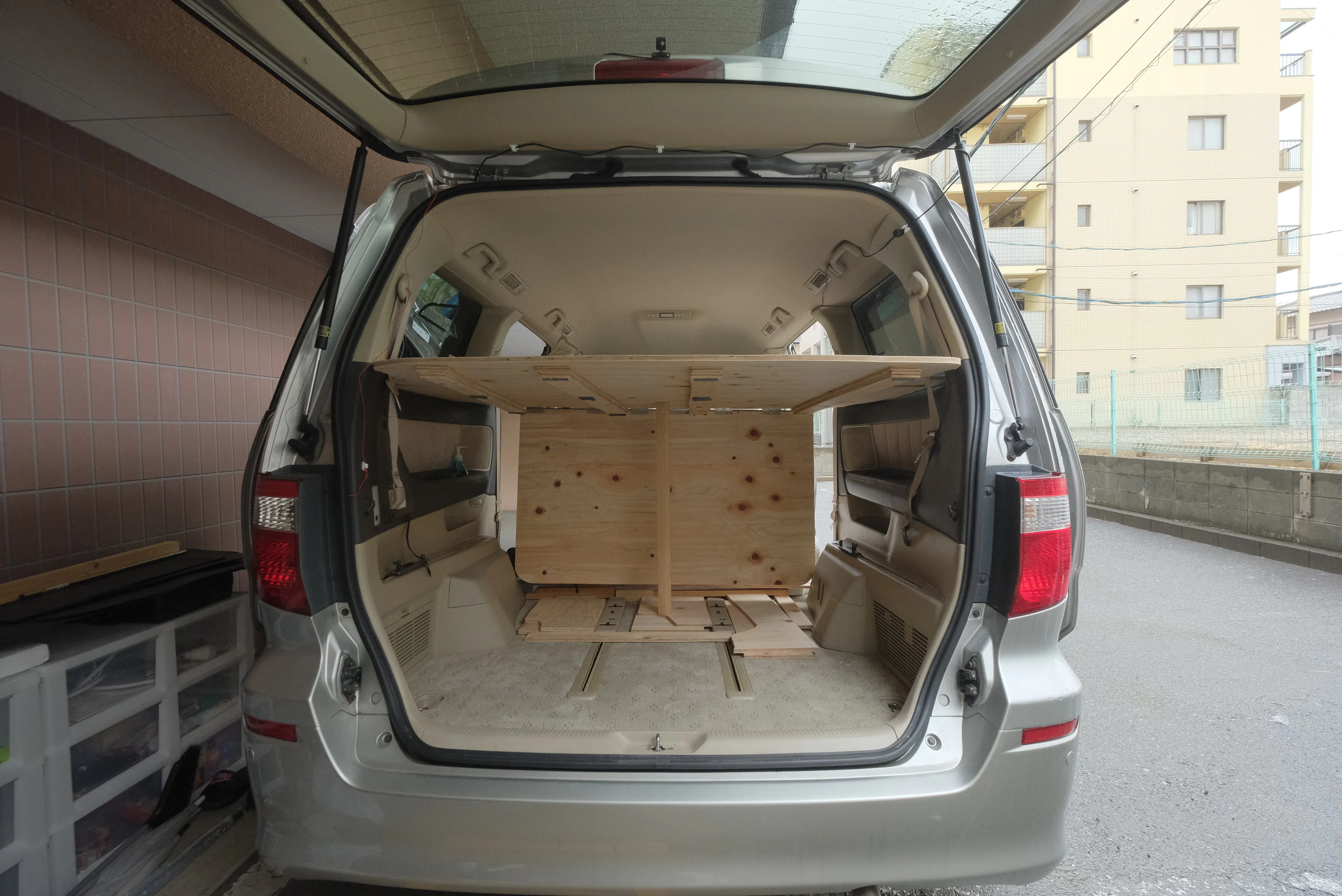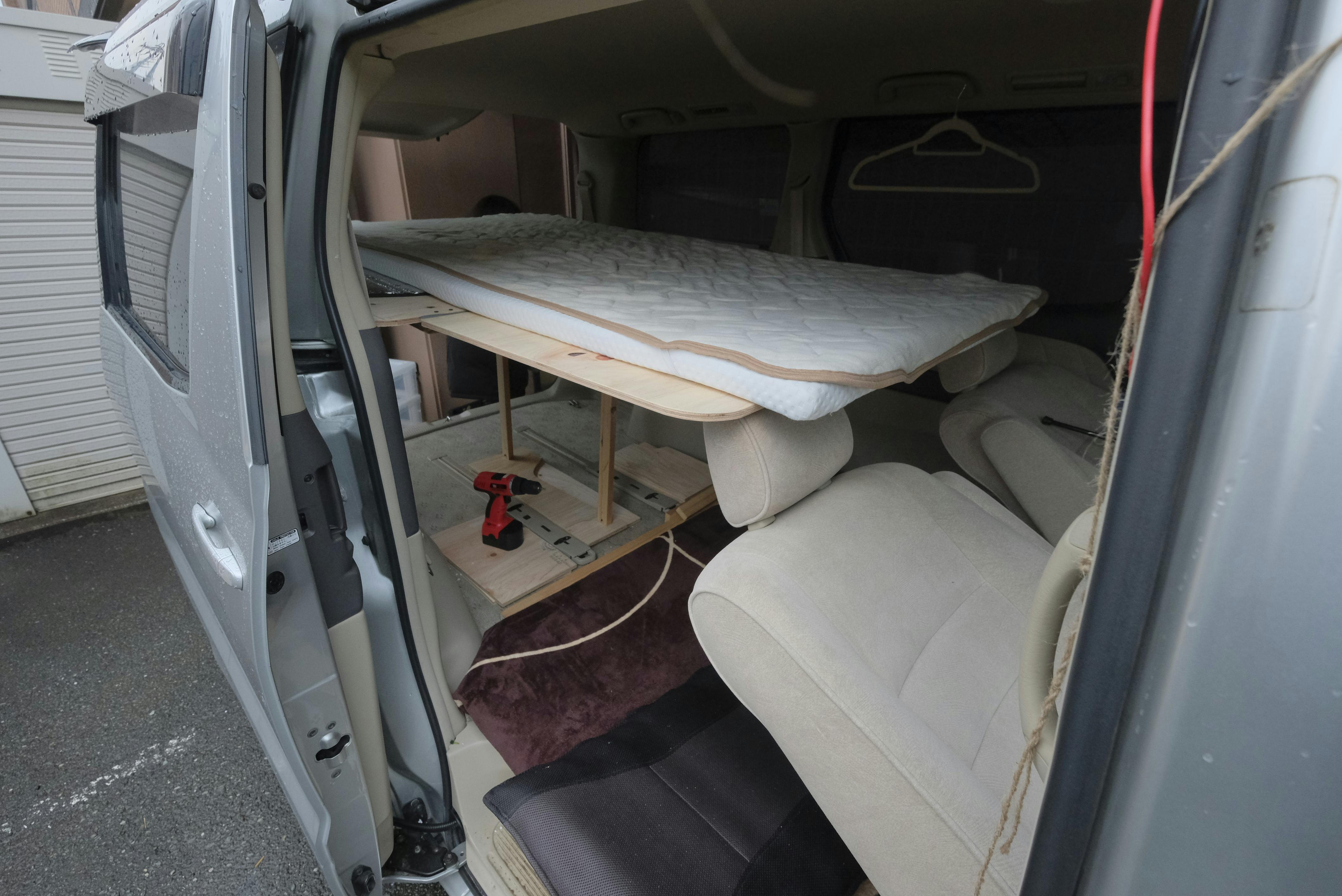 2020/09/14 21:41どうもお久しぶりです!忢刄です!本日で、クラウドファンディング募集最終日となってしまいました。ここ数日活動報告が出せておらず申し訳ございません。台風や、コロナウイルスの状況を加味し、活動計画を立て直したり、お仕事の撮影をしていたりと、日々、バタバタしております。その、計画準備中にも、新たな旅に向け、車内を構築しております。今までの車内がこちら!もともと家にあったベットフレームを無理やり車内に打ち込み就寝&収納スペースの確保。それで四国の旅を行ったのですが、色々と不便があったので、一から作り直すことに。全て荷物やベットを降ろし、計画開始。家で黙々と考えたのですが、どうも実物を見て動かないとなかなか動けないので早速実行!木材を購入し 印をつけジグソーを使いカット車内に持ち込み、細かいチェック何度も調整を行い、車のアールに合う様にカットその結果納得のいく製作ができました!ここを寝床に新たな旅に出たいと思います!たくさんのご支援、ご協力ありがとうございます!今後も、活動報告をどしどし載せていきます! もっと見る