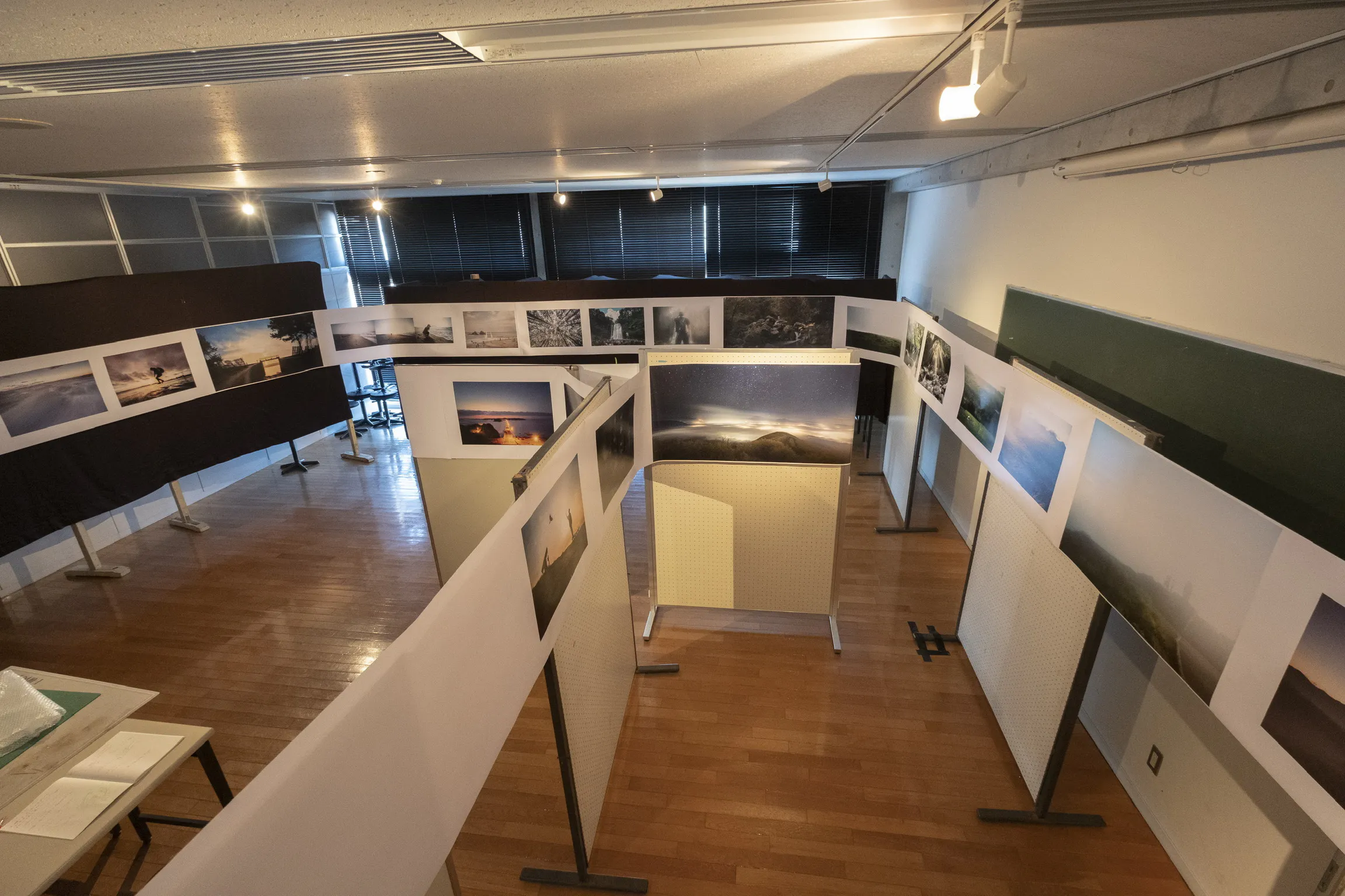 会場を取り囲む様にした展示方法は、見にきてくれた方が、写真の中に入ってしまう様な感覚になってもらいたく、配置。とても企画構成、設営がとんでもなく大変でしたが、とても良い経験になりました。