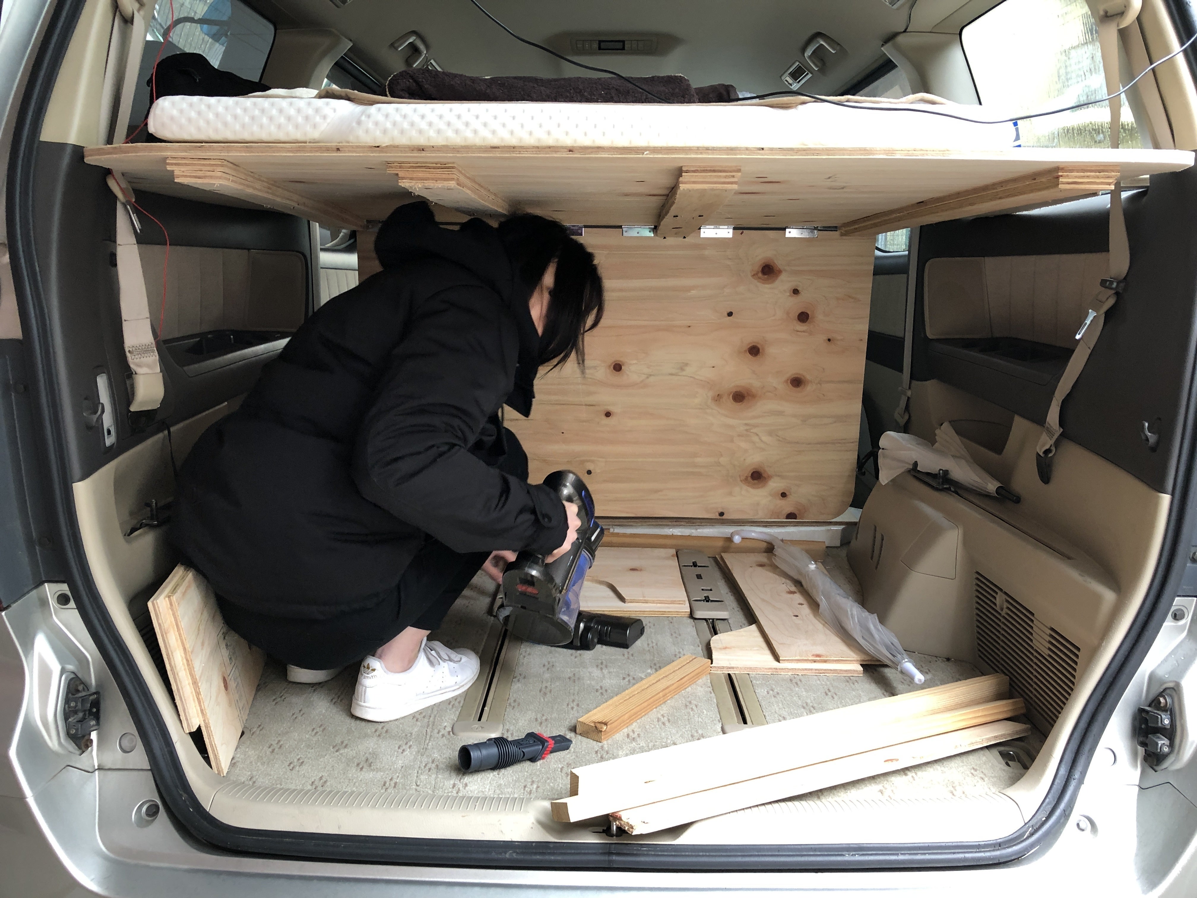 ◉約2ヶ月間オール車中泊に向けて車の後部座席を改造↓