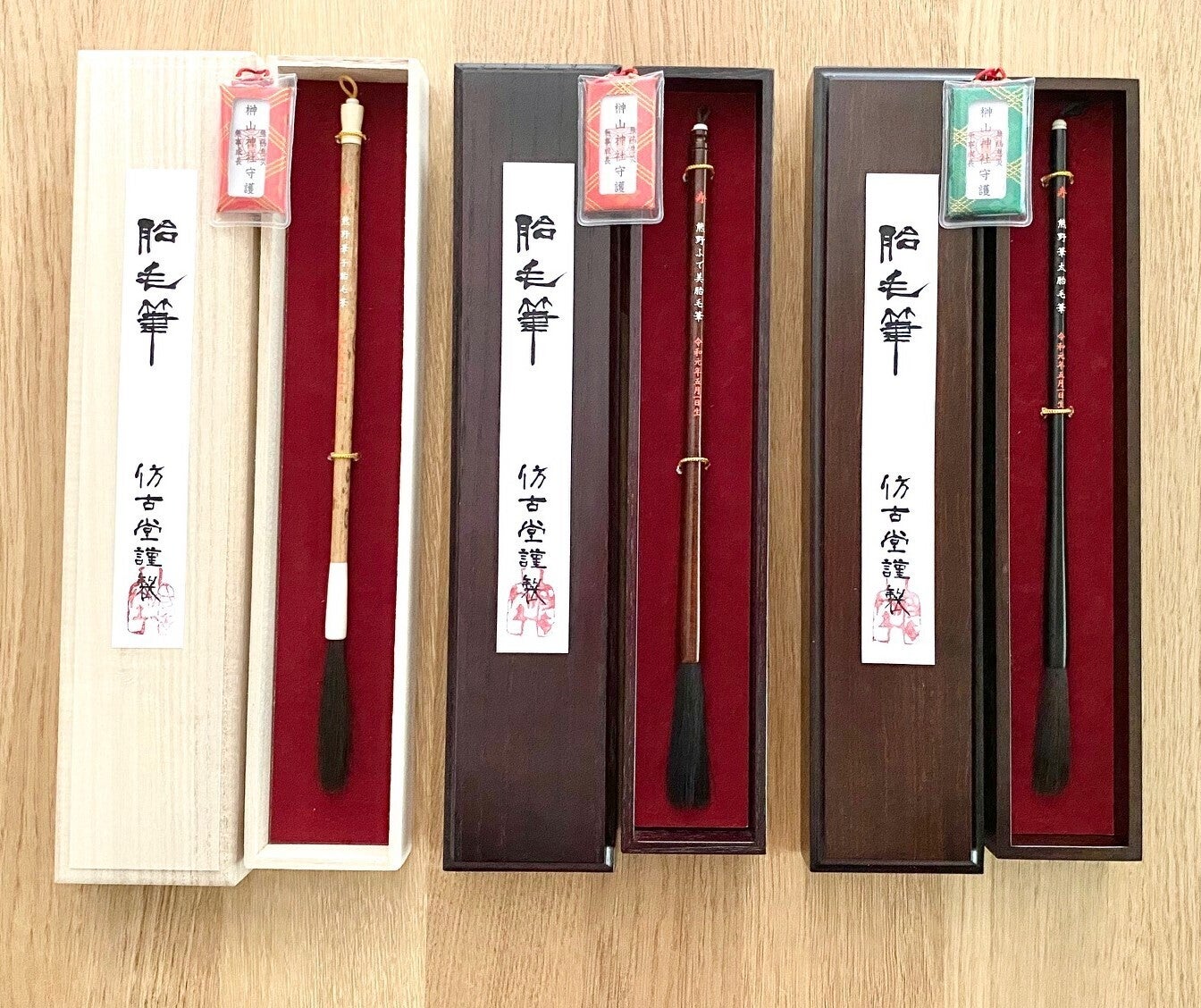 2020/12/01 21:50皆様、その後いかがお過ごしでしょうか?早いもので12月…随分寒くなりました。皆様からの温かいご支援や応援メッセージは今でも励みになっております。感謝の日々です^^デパート催事が少しずつ再開しておりますがコロナ禍でまたもや外出自粛モード…ご来店のお客様も少ないためやはり直接触れ合う機会がなかなかありません。そんな中でも、パッケージを明るく季節感もだそうとウインター&クリスマスパッケージを用意してネットショップにも掲載しております。ホログラム紙を使用したパッケージはなかなか人気です!各画像クリックで公式ショップクリスマス限定セットへさて、本日はリターン品に仕上げ体験を選択された支援者の方が先週ご来店くださいましたので皆様にもシェアさせていただきます。なんと、関東方面からご夫妻がご来店。ご遠方ありがとうございます!奥様は以前から書を嗜んでおられ熊野に一度来てみたい…と思っておられたそうです。ご主人様は一眼レフカメラを肩にかけて旅を写真に残そうとしておられましたが今回はせっかくなのでお二人一緒に筆づくり最終工程「仕上げ体験」です。画像クリックで公式ホームページ「仕上げ体験」詳細へまずは我が社の伝統工芸士 香川翆皐(すいこう)が筆づくりの工程を丁寧に説明し、仕上げを実際に伝授。お二人とも熱心に聞き、しっかり香川の手元をご覧になっています。さぁ!いよいよお客様自身が体験!まずは海藻の糊(フノリ)を穂に浸み込ませます。穂が軸に埋まって部分までしっかり浸み込ませます。トントントントントントン「いつまでトントンすればいいのかわからない…」職人さんは手に伝わる感覚とトントンする時の音で判断するのです。お二人ともとても器用な方でスムーズにノリが穂に浸み込んでいきました。穂に浸み込んだ余分な糊を金櫛で取り除きます。櫛の持ち方が意外と難しいのですがこの作業も綺麗な手捌きでクリア^^穂の根元に糸を巻いて右手に握った軸をクルクルと回しながら更に余分な糊を絞りながら毛がねじれないように真っすぐに…これが一番やねこい(広島弁)んです・笑今回はクラウドファンディング特別企画で2本(大筆・小筆)を体験していただきました。※通常は黒軸の大筆1本のみ軸には事前にお知らせ頂いていたお名前を彫り担当スタッフが準備。世界に一つだけのマイ筆が完成!この後、お二人を筆の里工房という筆の資料館にご案内しお別れしました。御縁をありがとうございます。この日の夕食は瀬戸内海で採れるお魚料理が食べたい…ということで広島市内の和食屋さんに行かれたようです。広島・熊野の旅、そして仕上げ体験いかがだったでしょうか?私達は支援者様と直接触れ合えたこと、とても嬉しかったです。また是非いらしてください。また我が社の近況報告や新企画等これからも発信し続けてまいります。どうぞ見守っていただければこの上なく幸せです。皆様もお身体どうぞご自愛なさって素敵な年末年始をお過ごしください^^では…また♡-古に仿う 古を繋ぐ-株式会社 仿古堂代表 井原 倫子 もっと見る