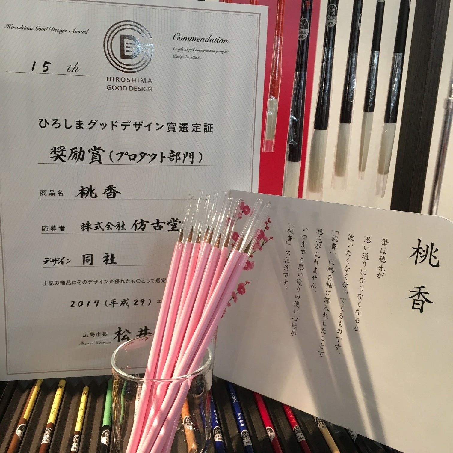 ひろしまGOOD DESIGN賞 2017 受賞 という評価を得た筆「桃香」を記念して、使いやすさと可愛らしさを更に加えた「マカロン」シリーズは、現代表と女性の多いスタッフの感性でプロデュースした人気商品です。