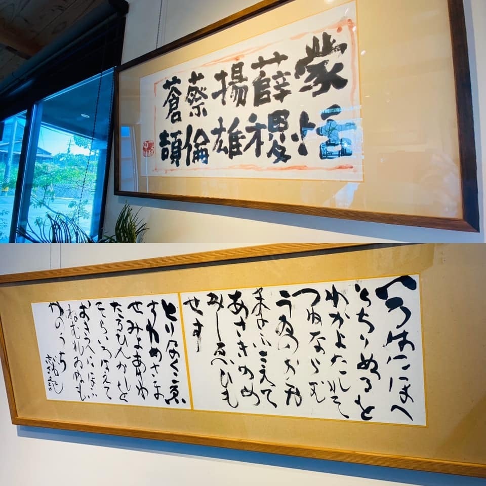 奥様である比田井小琴先生のかな書(右)